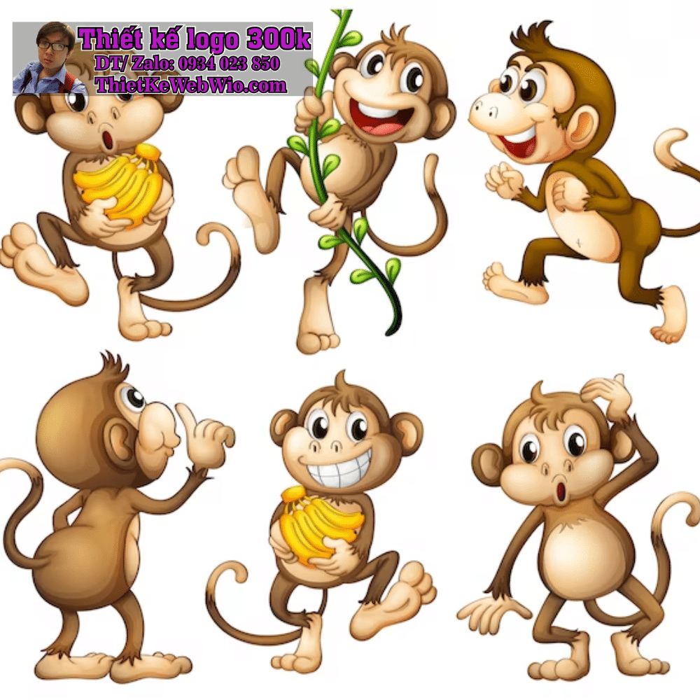 Hình ảnh Khỉ hoạt hình (monkey cartoon) thường được sử dụng trong thiết kế logo hoặc quảng cáo để tạo điểm nhấn. Với sự độc đáo và năng động, khỉ hoạt hình giúp thương hiệu nổi bật và dễ dàng thu hút sự chú ý của khách hàng.
