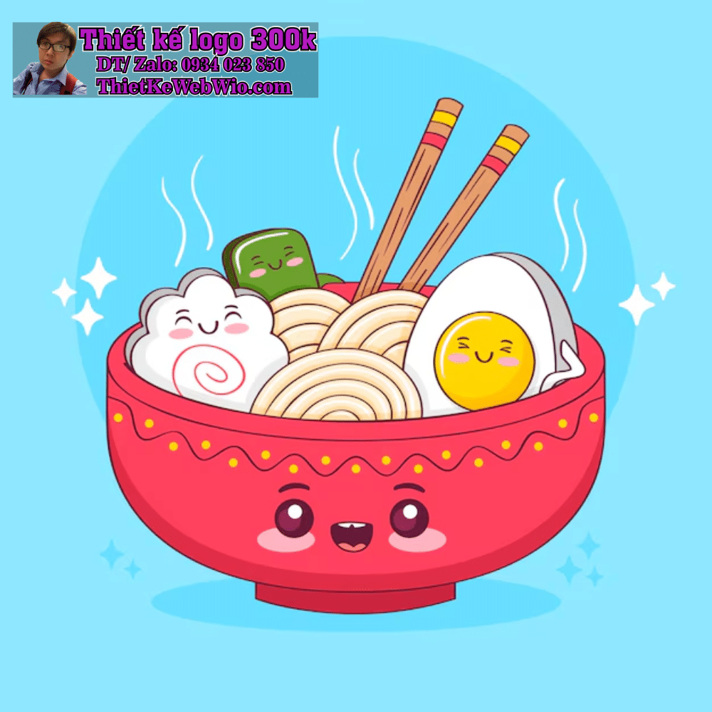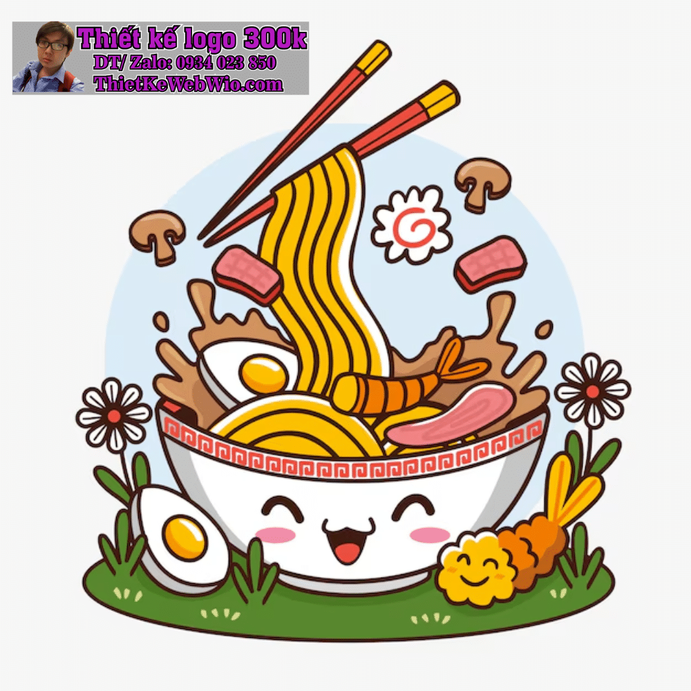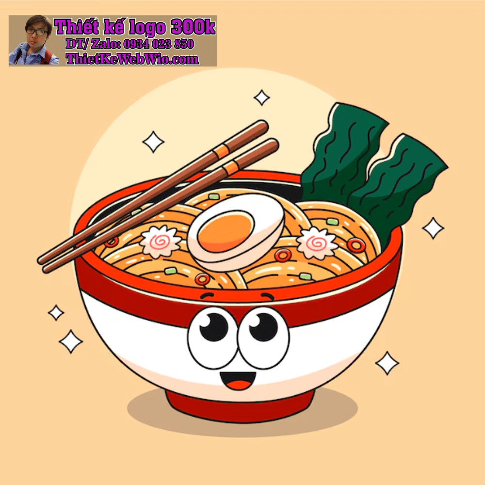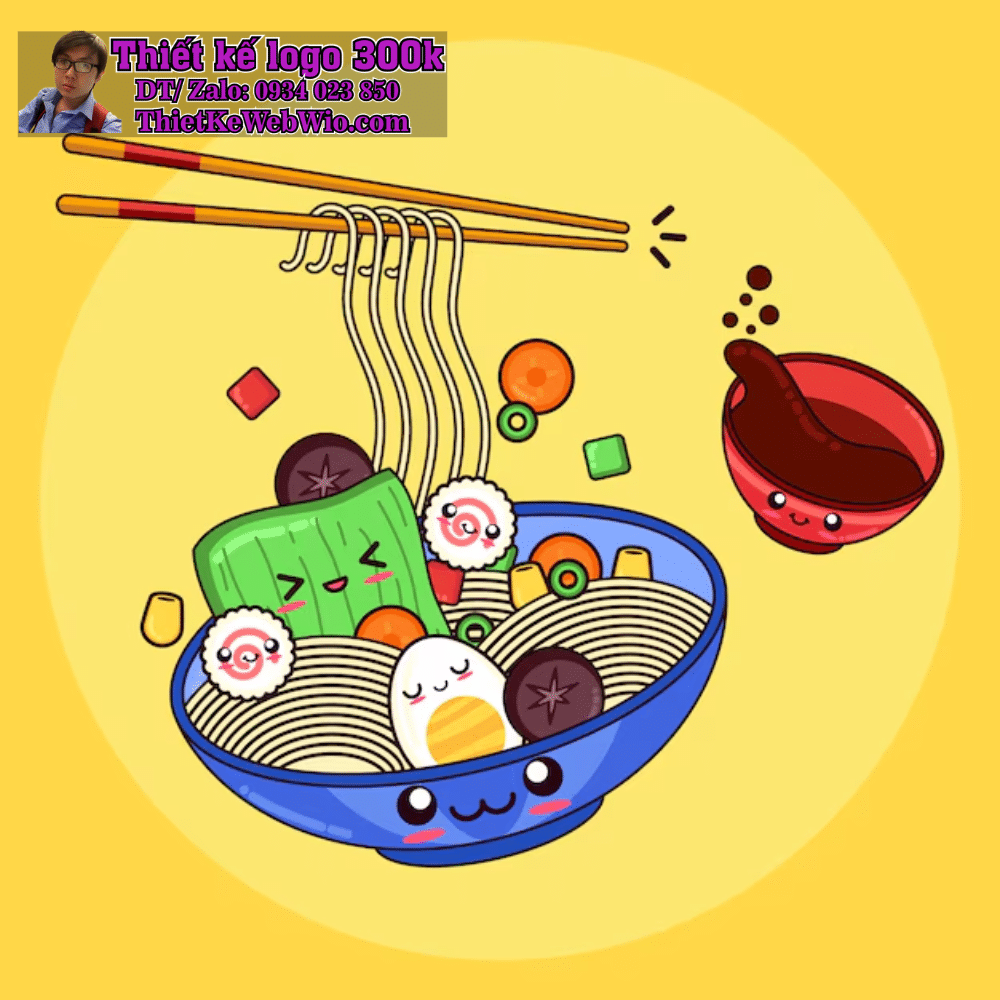 Hình ảnh Mì hoạt hình (noodles cartoon) được sử dụng phổ biến trong thiết kế logo của các nhà hàng, quán mì, hoặc thương hiệu thực phẩm liên quan. Một thiết kế logo sử dụng mì hoạt hình giúp thương hiệu nổi bật và ghi nhớ dễ dàng trong tâm trí khách hàng.