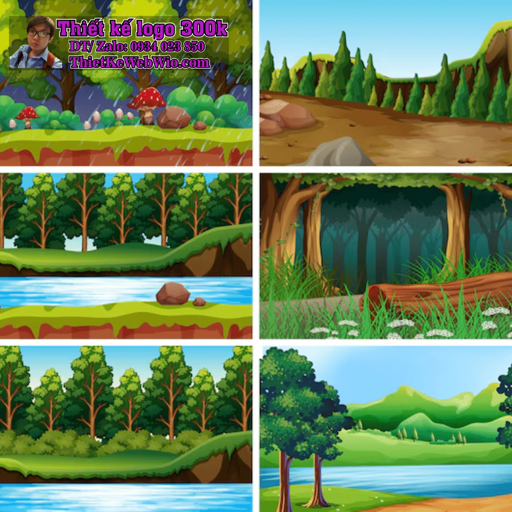 Hình ảnh Rừng hoạt hình (forest cartoon) thường được sử dụng trong thiết kế logo và nhận diện thương hiệu cho các tổ chức bảo vệ môi trường, công ty sản xuất thực phẩm hữu cơ hoặc sản phẩm thân thiện với thiên nhiên.