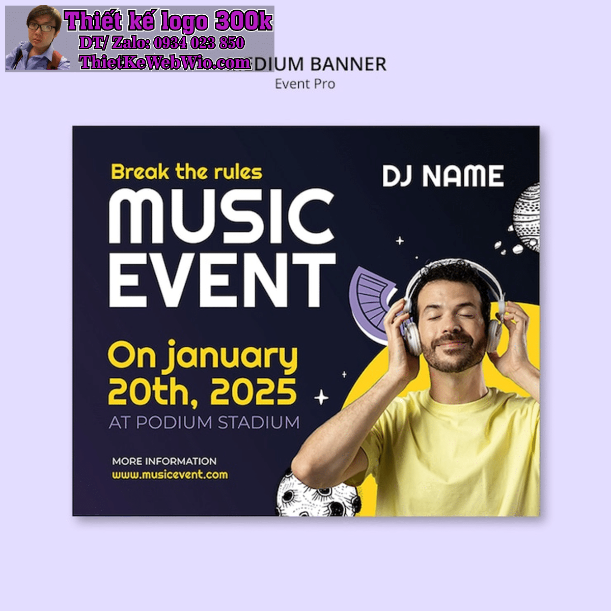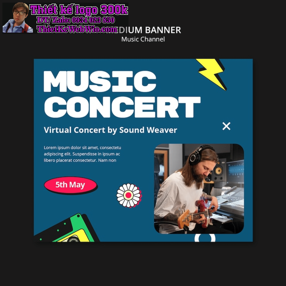 Mẫu banner này có thể sử dụng các yếu tố thiết kế đồ họa mạnh mẽ, kết hợp với hình ảnh chân dung nghệ sĩ cùng thông điệp quảng bá sản phẩm âm nhạc. Điều này không chỉ tạo nên sự thu hút mà còn thể hiện sự chuyên nghiệp của nghệ sĩ.
