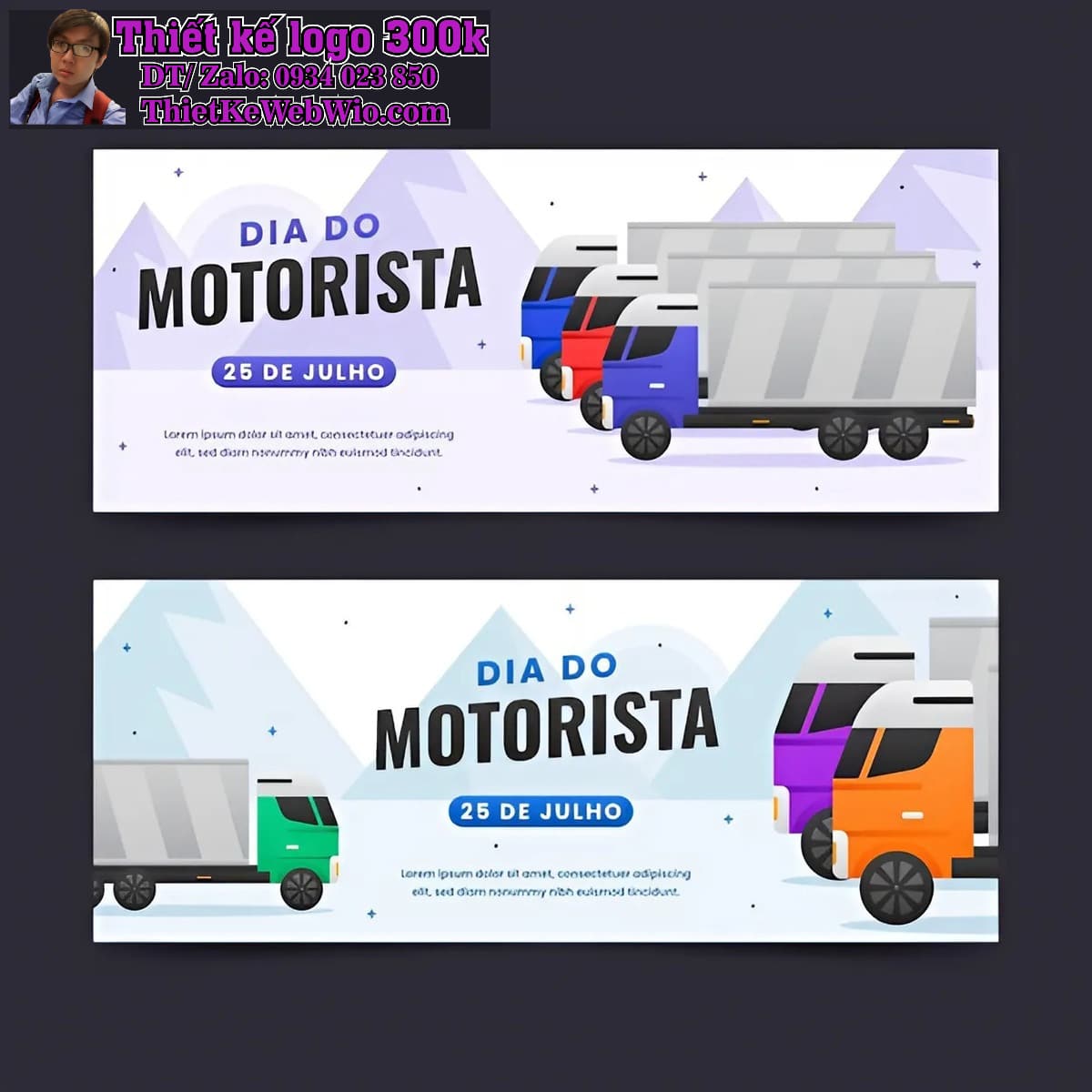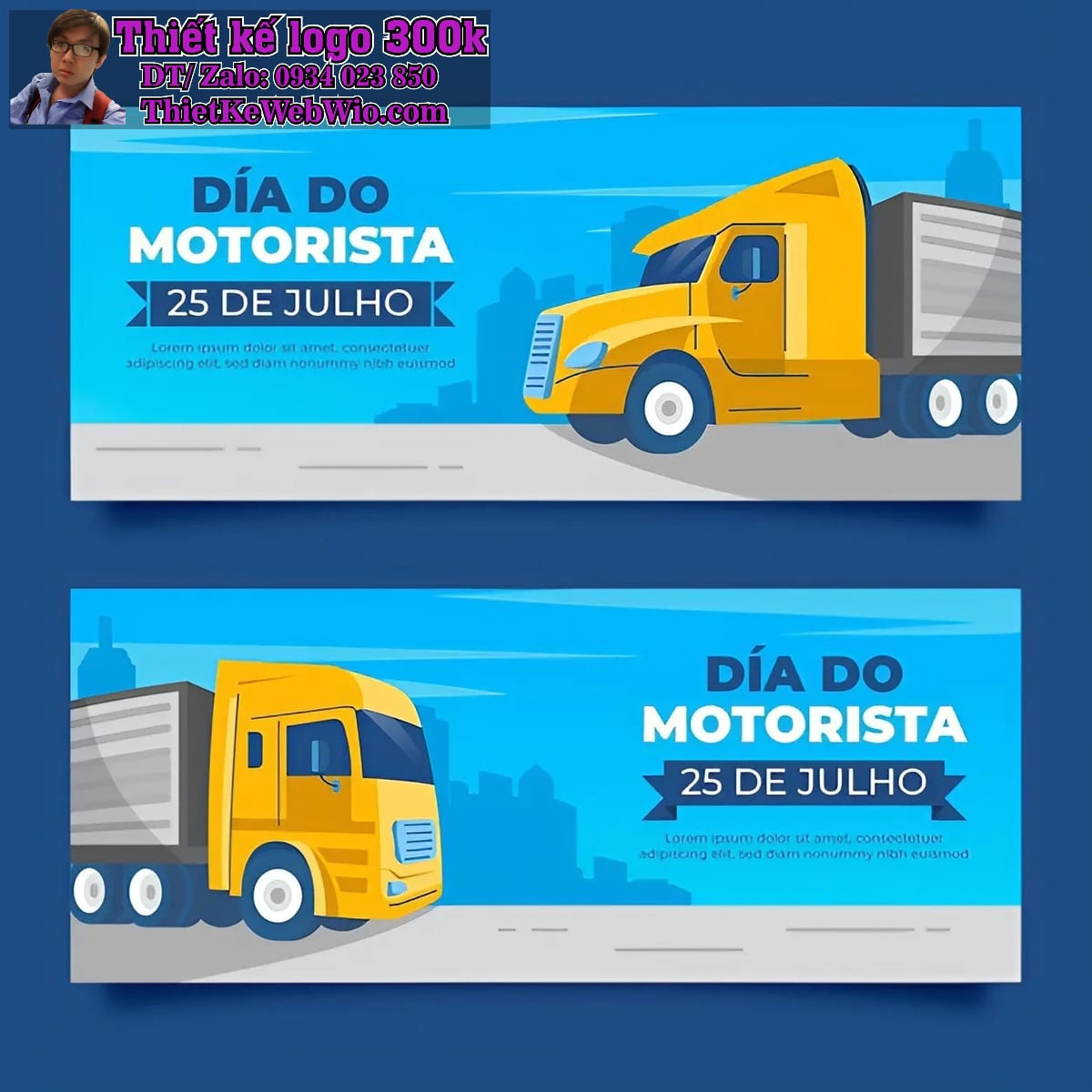 Banner với hình ảnh container và xe tải: Đây là biểu tượng quen thuộc và dễ liên tưởng đến ngành vận tải.