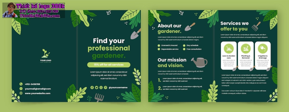Thiết kế brochure Dịch vụ chăm sóc cây xanh của doanh nghiệp sẽ đạt được chất lượng cao và truyền tải đúng thông điệp mong muốn đến khách hàng.