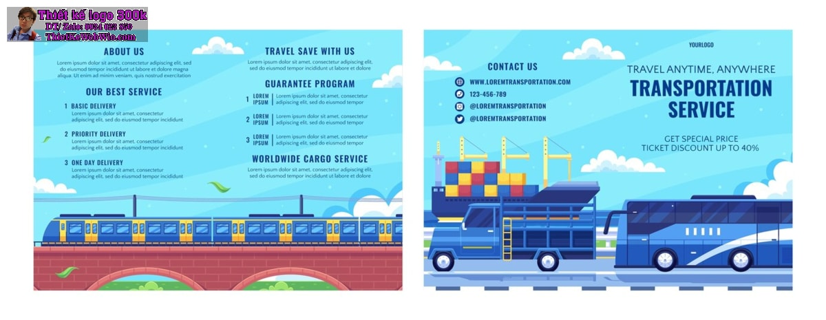 Thiết kế brochure Dịch vụ vận tải và logistics đóng vai trò quan trọng trong việc giới thiệu các dịch vụ mà doanh nghiệp cung cấp đến khách hàng tiềm năng. Trong ngành vận tải và logistics, nơi mà sự tin cậy và chính xác được đặt lên hàng đầu, một brochure được thiết kế chuyên nghiệp giúp doanh nghiệp truyền tải rõ ràng các thông tin về dịch vụ, chi phí và lợi ích cho khách hàng.