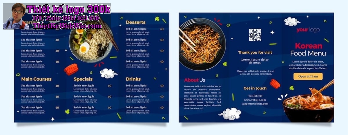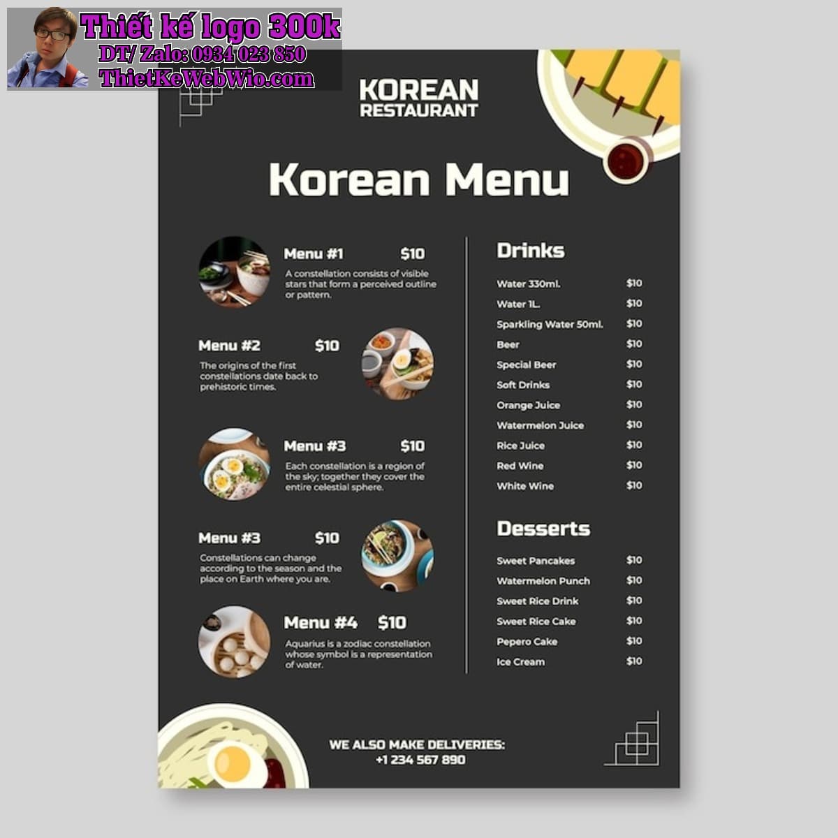Thiết Kế Menu Nhà Hàng Ẩm Thực Hàn Quốc chính là yếu tố đầu tiên mà khách hàng tiếp xúc khi vào nhà hàng. Nó không chỉ giúp họ lựa chọn món ăn mà còn tạo dựng sự tin tưởng, kích thích vị giác và phản ánh phong cách nhà hàng. Một thiết kế menu tốt sẽ: