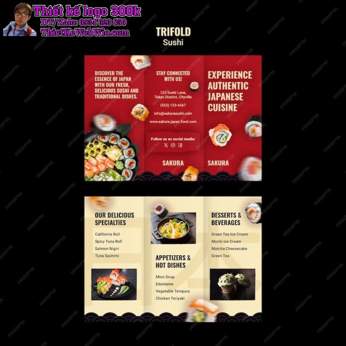 - Phong cách hiện đại: Tối giản, thanh lịch với phông chữ đơn giản, hình ảnh sắc nét. Phù hợp cho các nhà hàng fusion hoặc cao cấp.