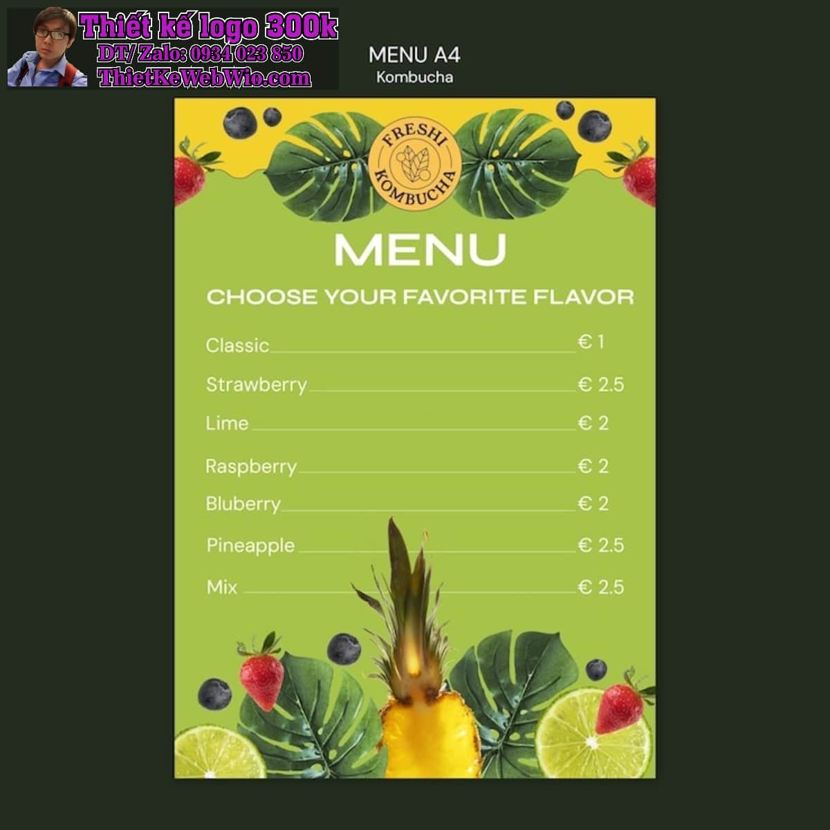 thiết kế menu quán sinh tố không chỉ đơn thuần là việc liệt kê các loại thức uống mà còn là cách thể hiện phong cách và tinh thần của thương hiệu. thiết kế menu quán sinh tố được thiết kế chuyên nghiệp sẽ giúp quán sinh tố tạo ấn tượng tốt, thu hút khách hàng và tăng trưởng doanh thu. Để đạt được điều này, hãy đầu tư vào dịch vụ thiết kế menu chuyên nghiệp, đảm bảo sản phẩm cuối cùng hoàn toàn xứng đáng với công sức và chi phí bạn bỏ ra.