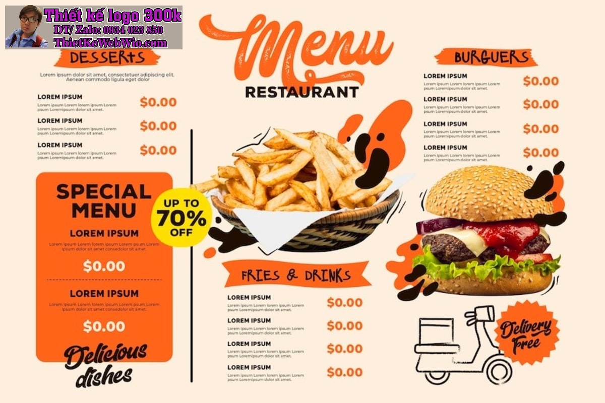 thiết kế menu thức ăn nhanh (Fast Food) là yếu tố đầu tiên khách hàng tiếp cận trước khi quyết định gọi món. Một thiết kế bắt mắt, hiện đại, dễ đọc sẽ tạo thiện cảm ngay từ cái nhìn đầu tiên. Điều này đặc biệt quan trọng đối với các cửa hàng thức ăn nhanh, nơi quyết định mua hàng thường diễn ra trong vài giây.