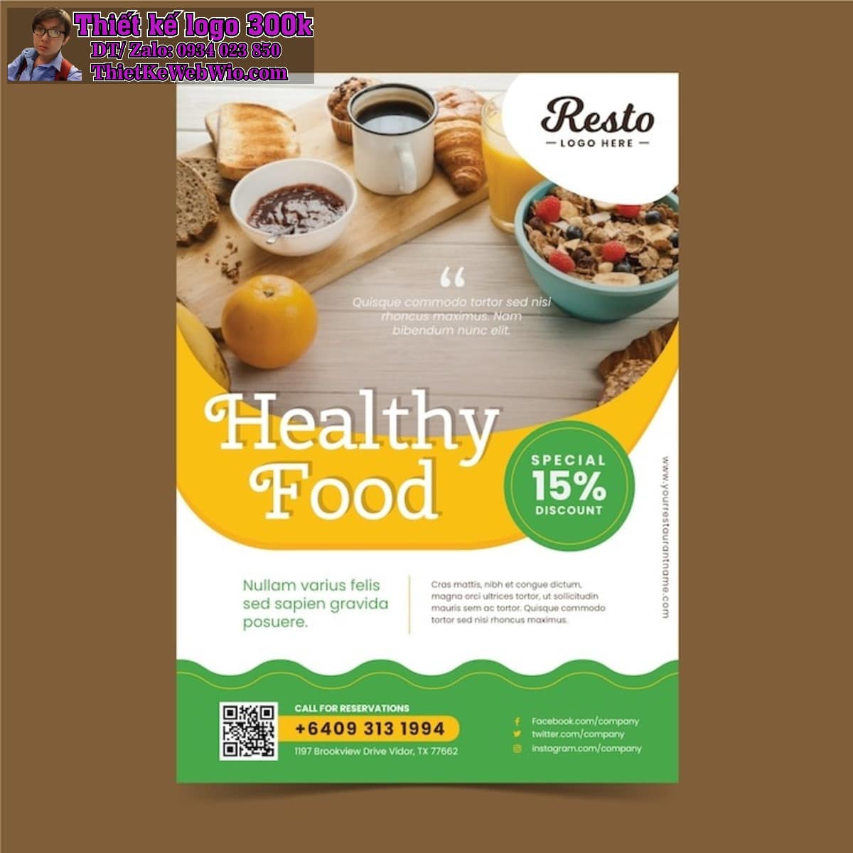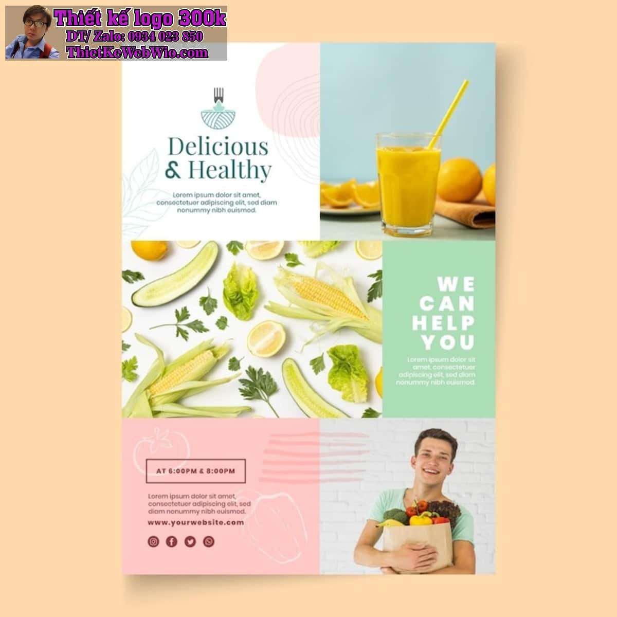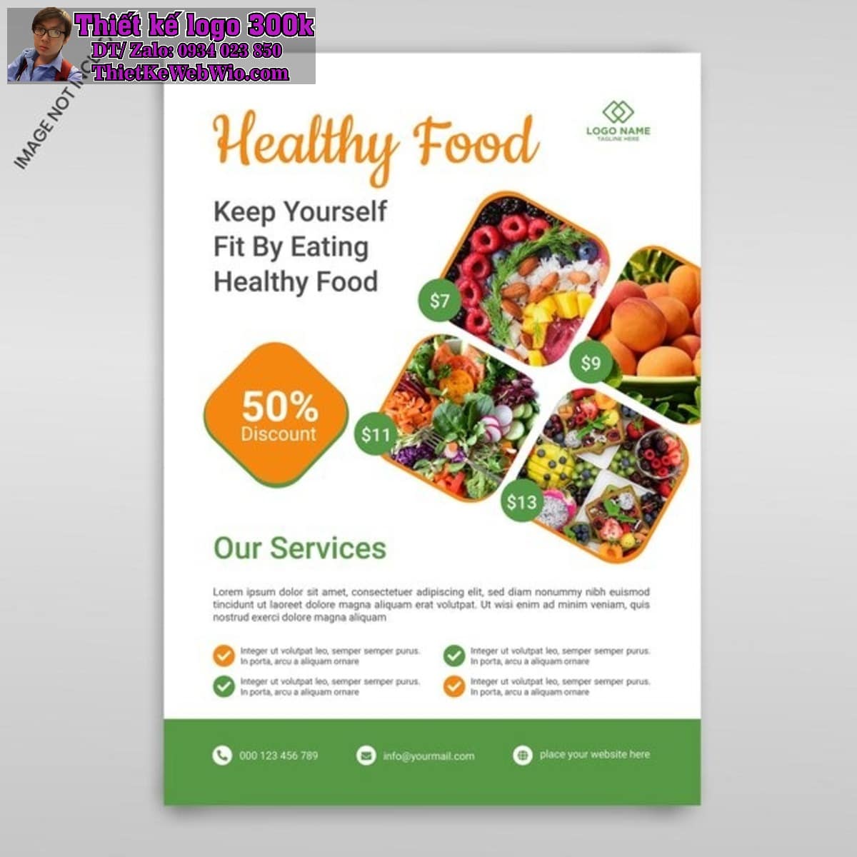 Thiết kế tờ rơi Cửa hàng thực phẩm sức khỏe và dinh dưỡng giúp khách hàng nhận biết được các sản phẩm an toàn, chất lượng và phù hợp với nhu cầu dinh dưỡng. Tờ rơi đóng vai trò quan trọng trong việc giới thiệu các sản phẩm như thực phẩm bổ sung, thực phẩm hữu cơ, và các sản phẩm dinh dưỡng đặc biệt, từ đó xây dựng lòng tin cho thương hiệu và khuyến khích khách hàng lựa chọn sản phẩm.
