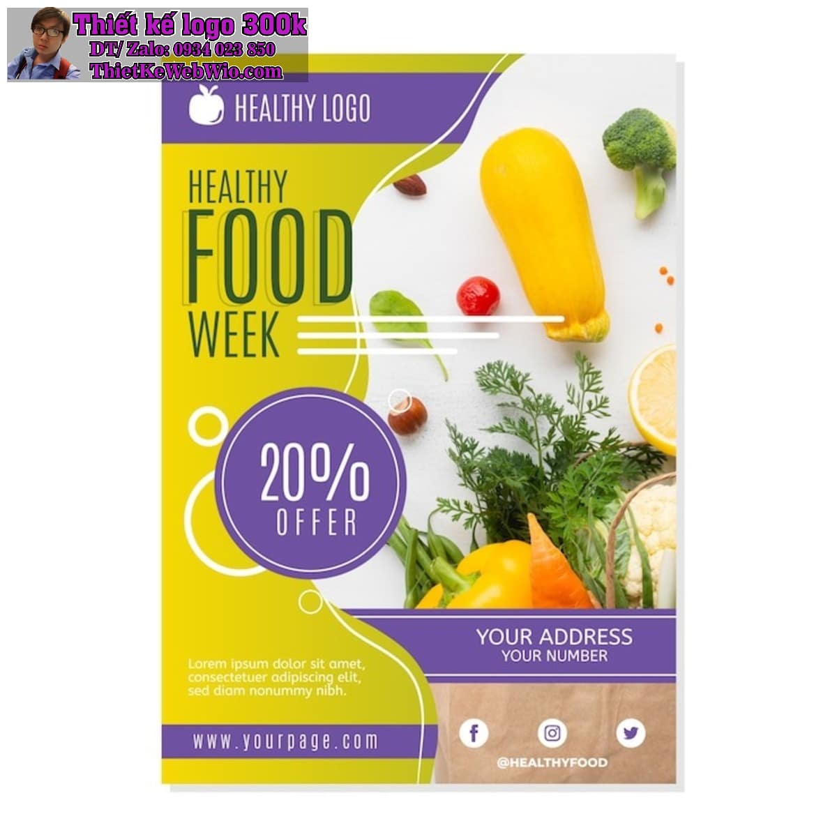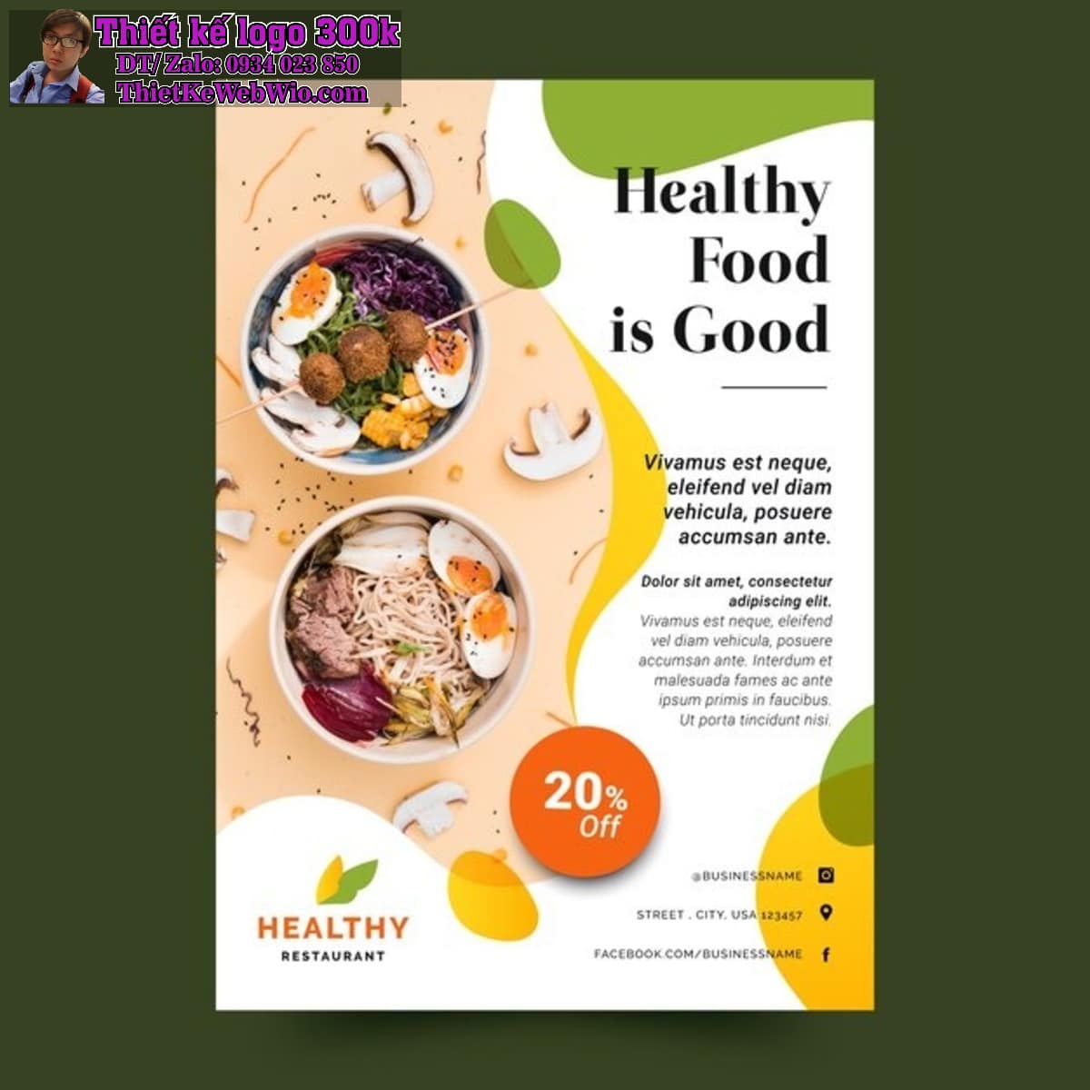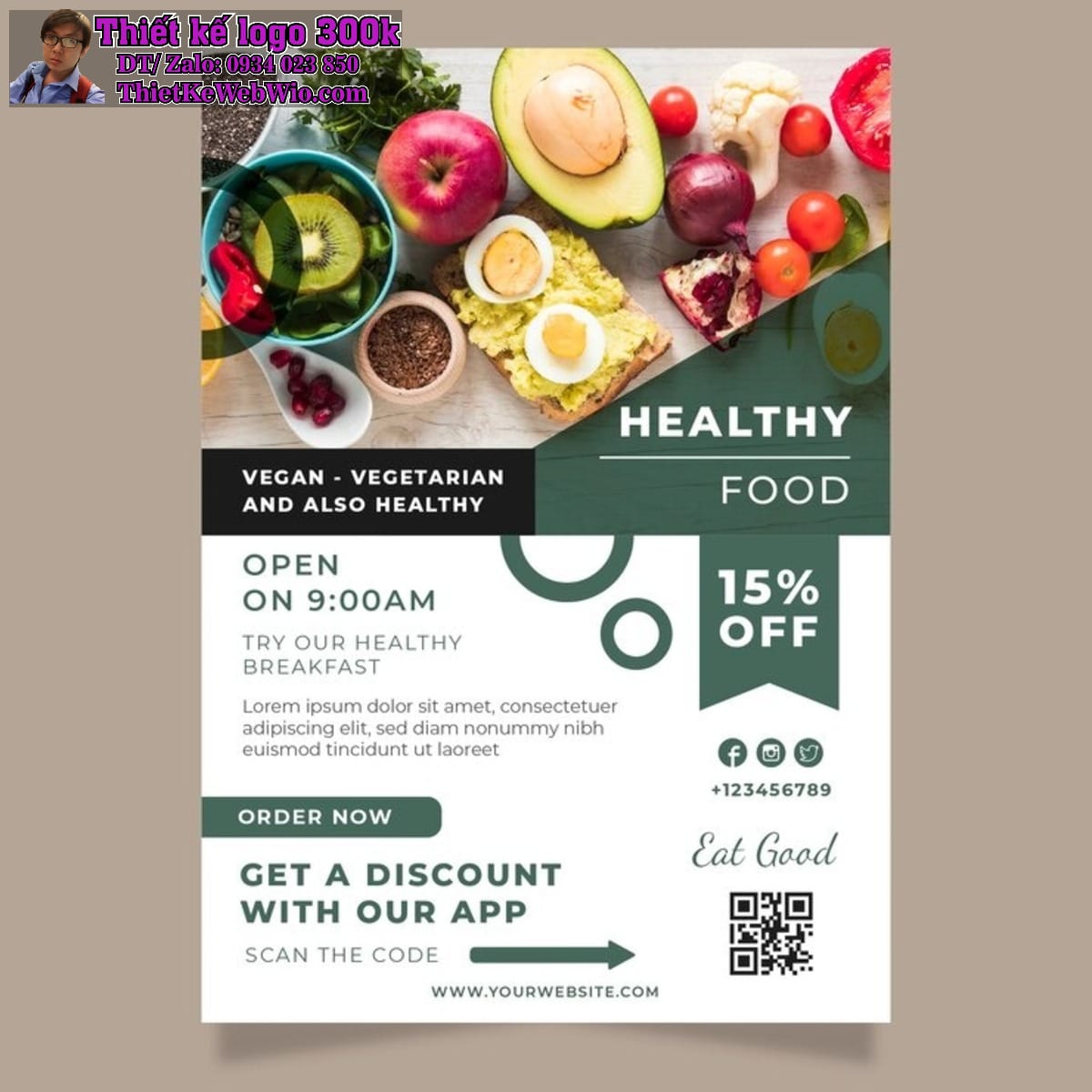 Thiết kế tờ rơi Cửa hàng thực phẩm sức khỏe và dinh dưỡng giúp khách hàng nhận biết được các sản phẩm an toàn, chất lượng và phù hợp với nhu cầu dinh dưỡng. Tờ rơi đóng vai trò quan trọng trong việc giới thiệu các sản phẩm như thực phẩm bổ sung, thực phẩm hữu cơ, và các sản phẩm dinh dưỡng đặc biệt, từ đó xây dựng lòng tin cho thương hiệu và khuyến khích khách hàng lựa chọn sản phẩm.