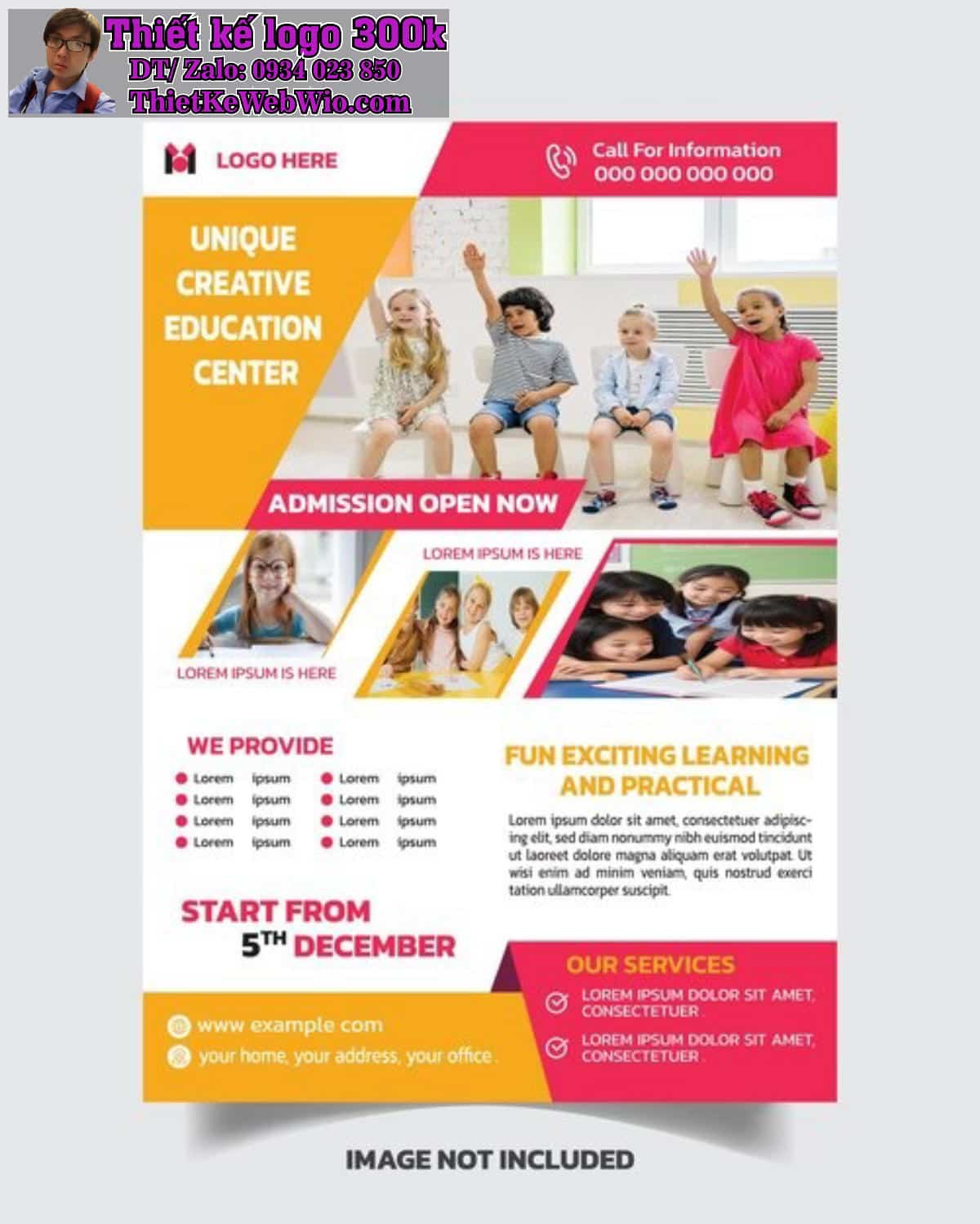 Thiết kế tờ rơi Dịch vụ giáo dục và trung tâm đào tạo đóng vai trò quan trọng trong việc thu hút học viên mới và xây dựng uy tín cho các trung tâm giáo dục. Một tờ rơi được thiết kế chuyên nghiệp giúp truyền tải thông tin đầy đủ và tạo dựng hình ảnh đáng tin cậy.