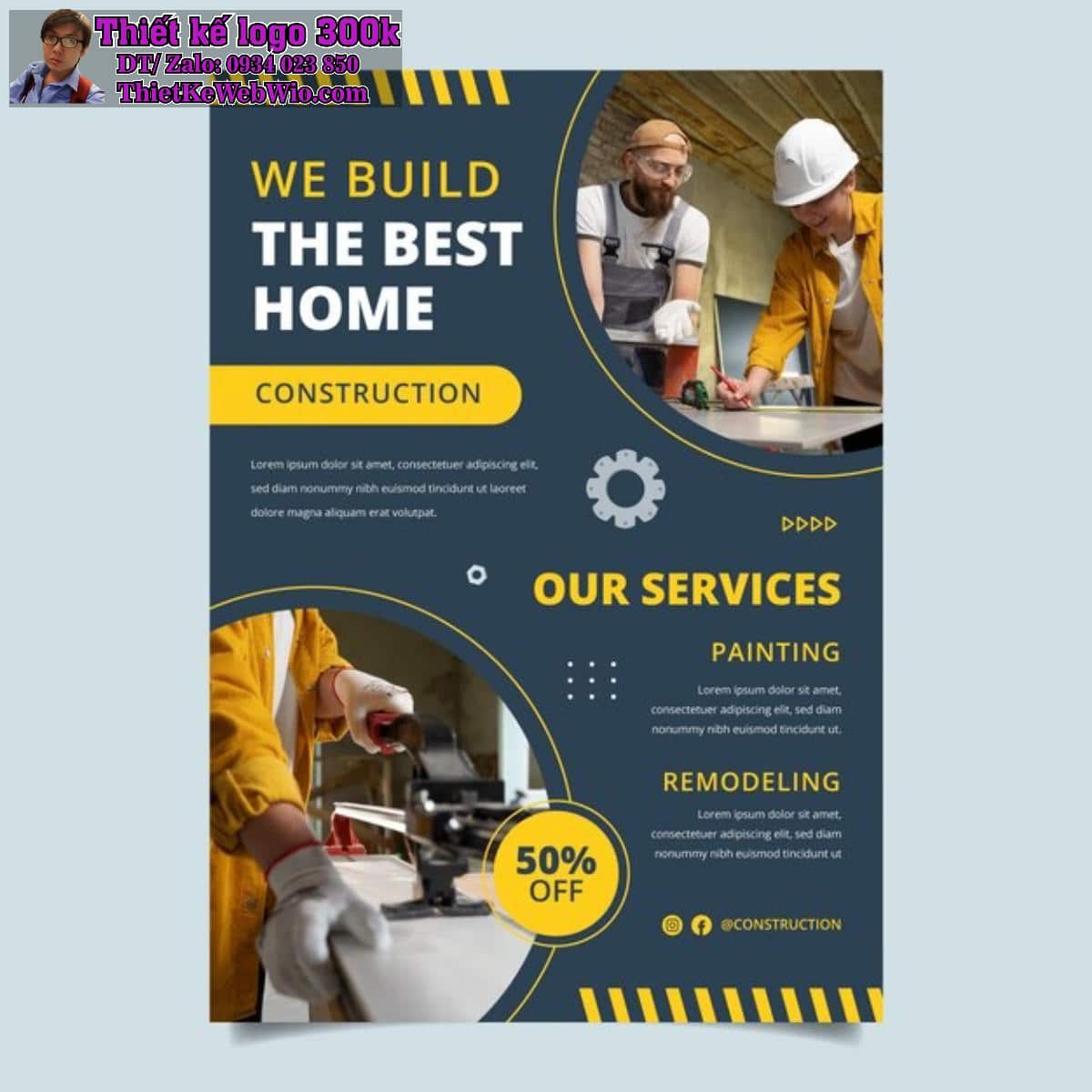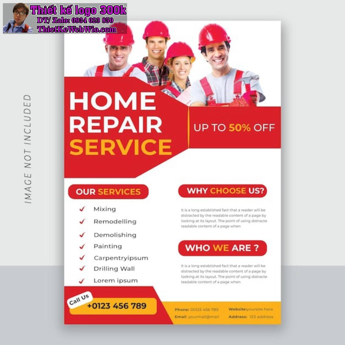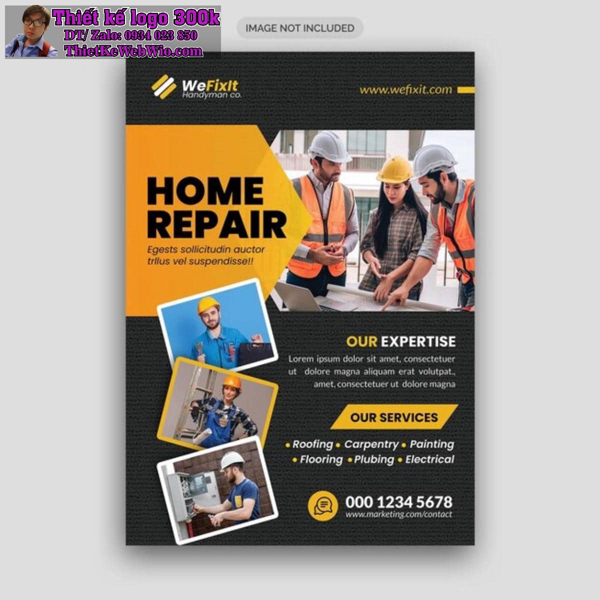 Với sự đầu tư kỹ lưỡng và chăm chút, thiết kế tờ rơi Dịch vụ sửa chữa nhà cửa và xây dựng sẽ là công cụ mạnh mẽ, giúp doanh nghiệp tăng cường uy tín, nâng cao nhận diện thương hiệu và dễ dàng chiếm lĩnh thị trường đầy cạnh tranh này.