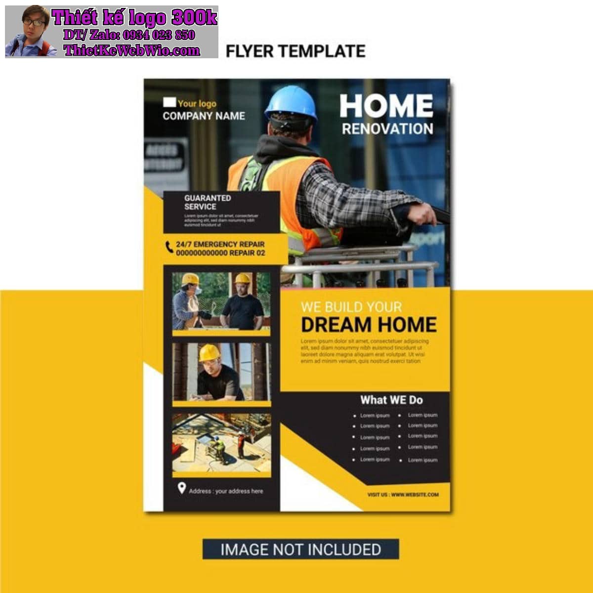 Một tờ rơi được thiết kế chuyên nghiệp sẽ tạo cảm giác đáng tin cậy và thể hiện uy tín của doanh nghiệp. Thiết kế tờ rơi Dịch vụ sửa chữa nhà cửa và xây dựng giúp doanh nghiệp xây dựng hình ảnh tốt trong mắt khách hàng.