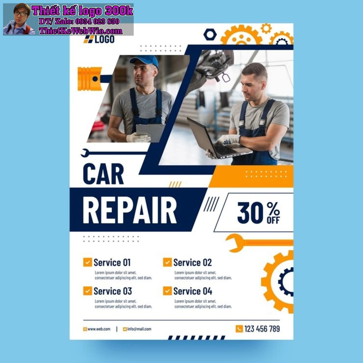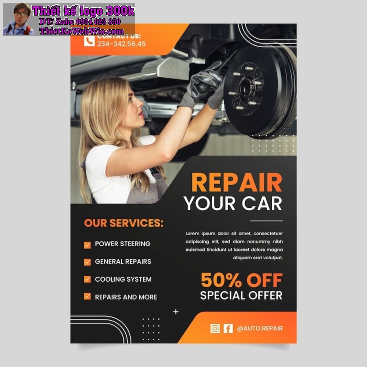 Sử dụng màu tương phản trong thiết kế tờ rơi Dịch vụ sửa chữa ô tô và xe máy