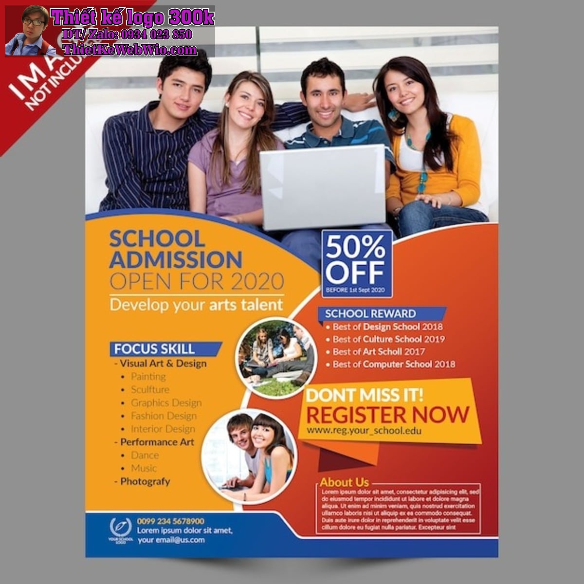 Hình ảnh nên đặt ở vị trí nổi bật trong thiết kế tờ rơi Dịch vụ tư vấn du học