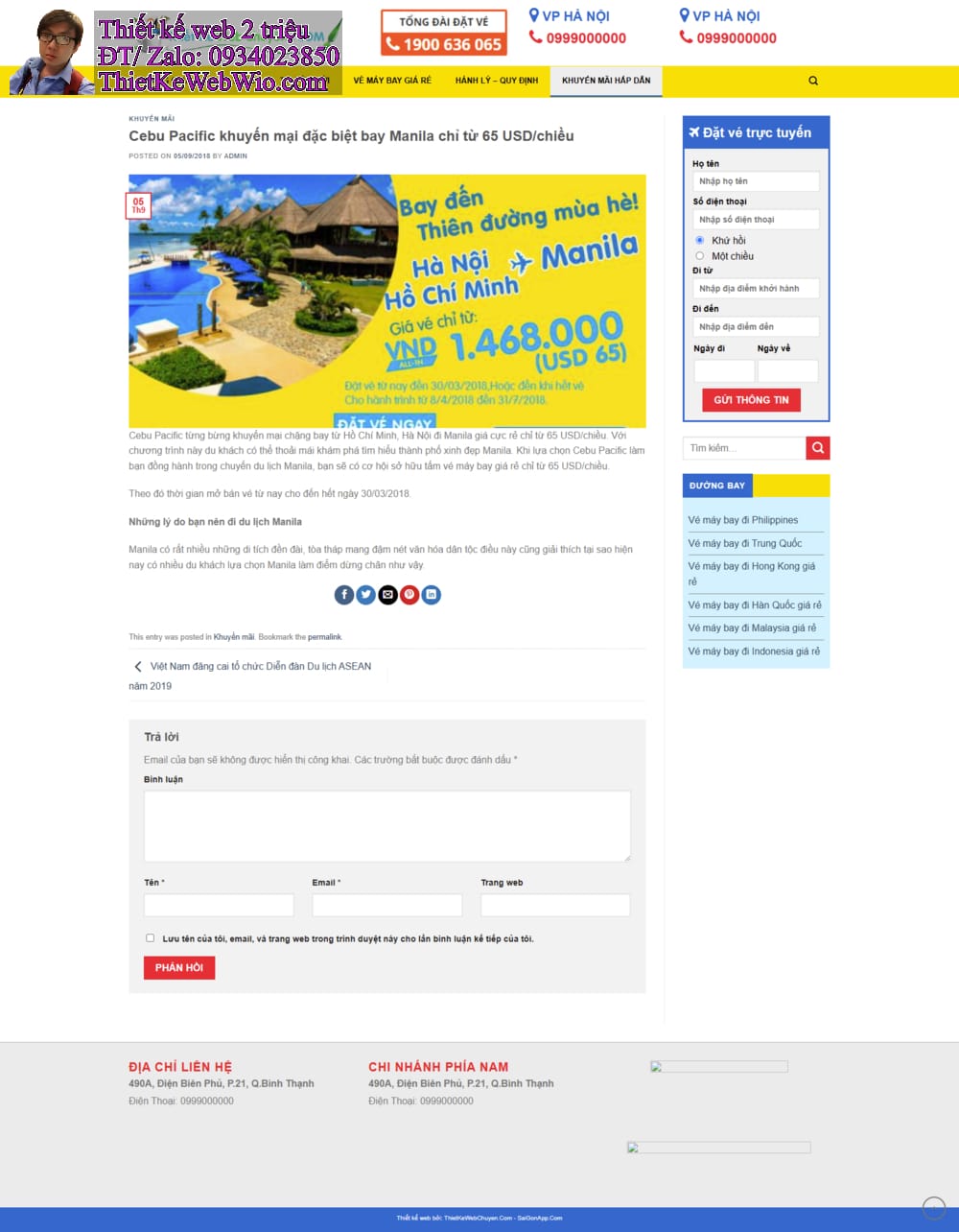 Giới thiệu về dịch vụ Thiết kế web bán vé máy bay
