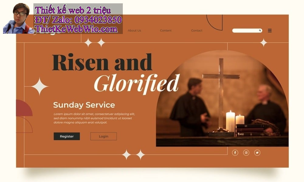 • thiết kế web công giáo Sử dụng các biểu tượng Công Giáo như thánh giá, Đức Mẹ, hình ảnh nhà thờ.