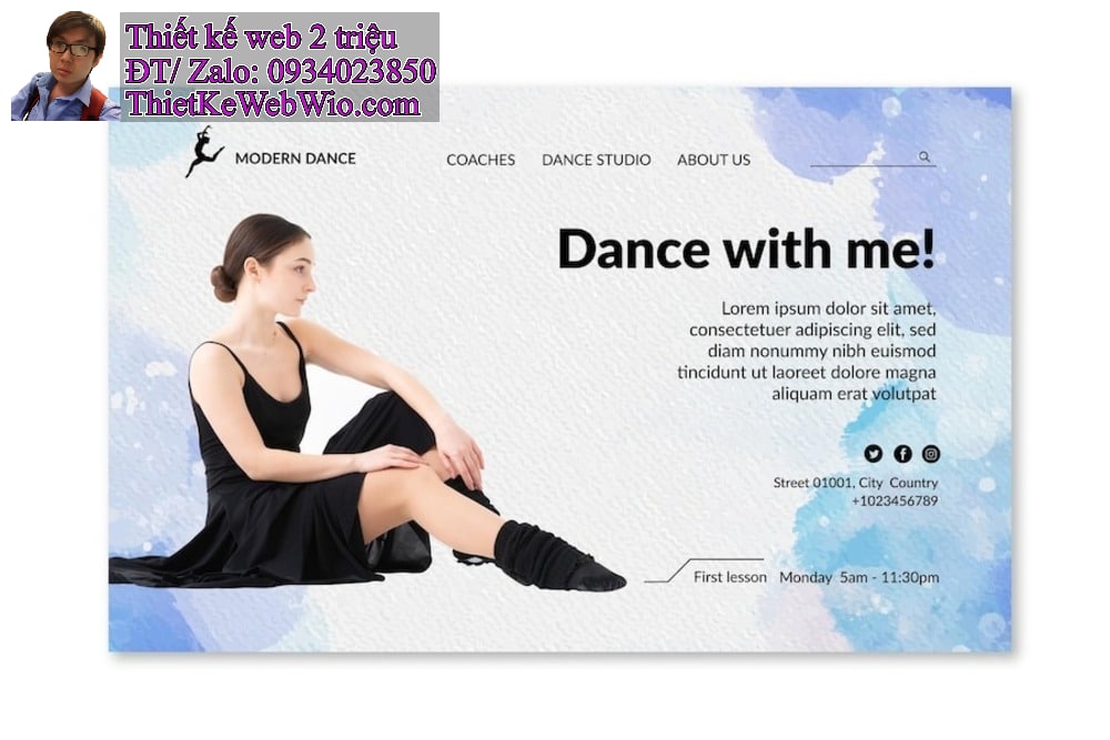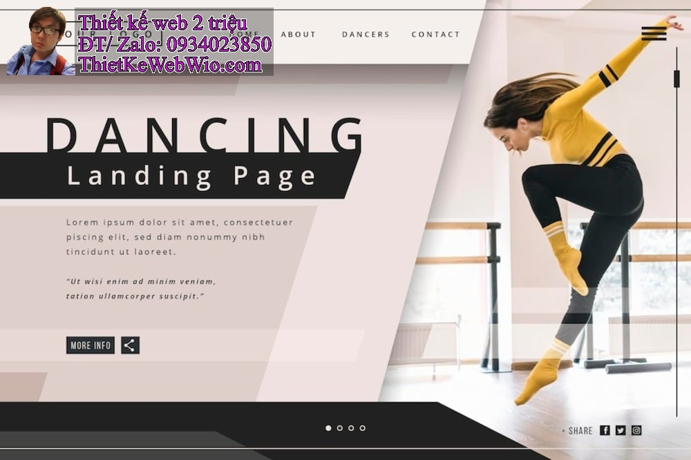 - Tích hợp liên kết đến Facebook, Instagram, TikTok để quảng bá nội dung và video về các hoạt động thiết kế web khiêu vũ.