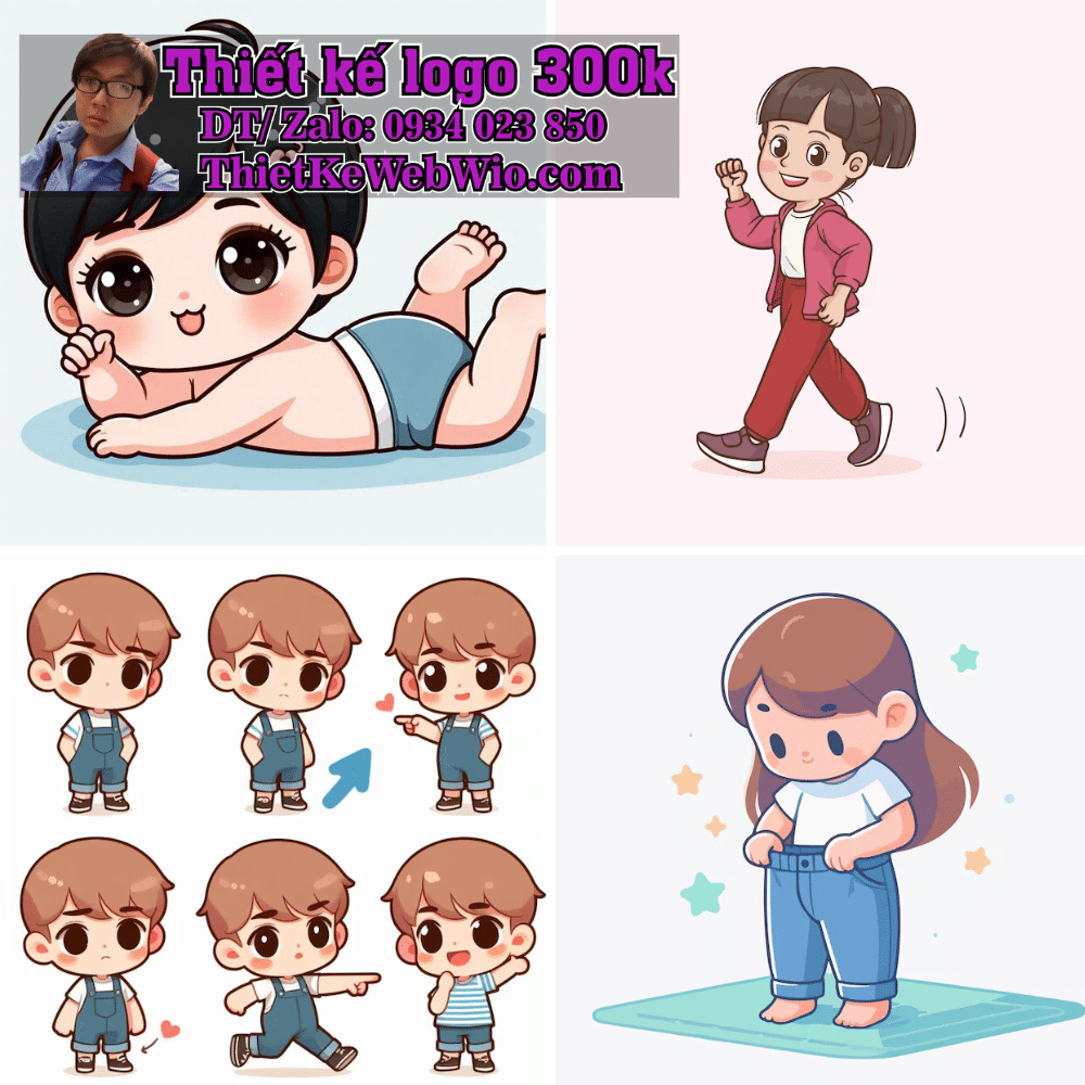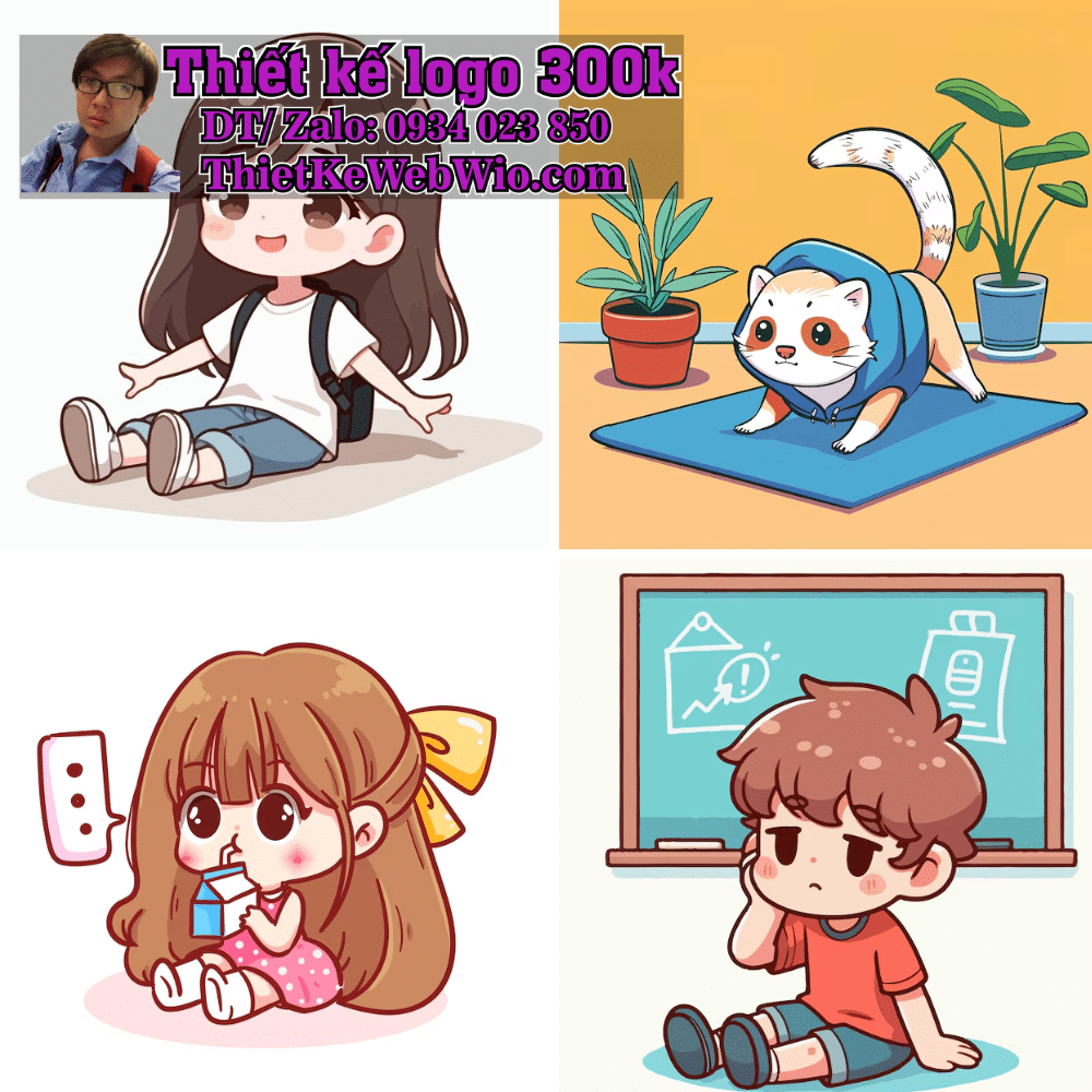 4.2 Tư Thế Chibi Dễ Thương (Cute Chibi Poses) Trong Thiết Kế Nhãn Dán Và Đồ Dùng Trang Trí