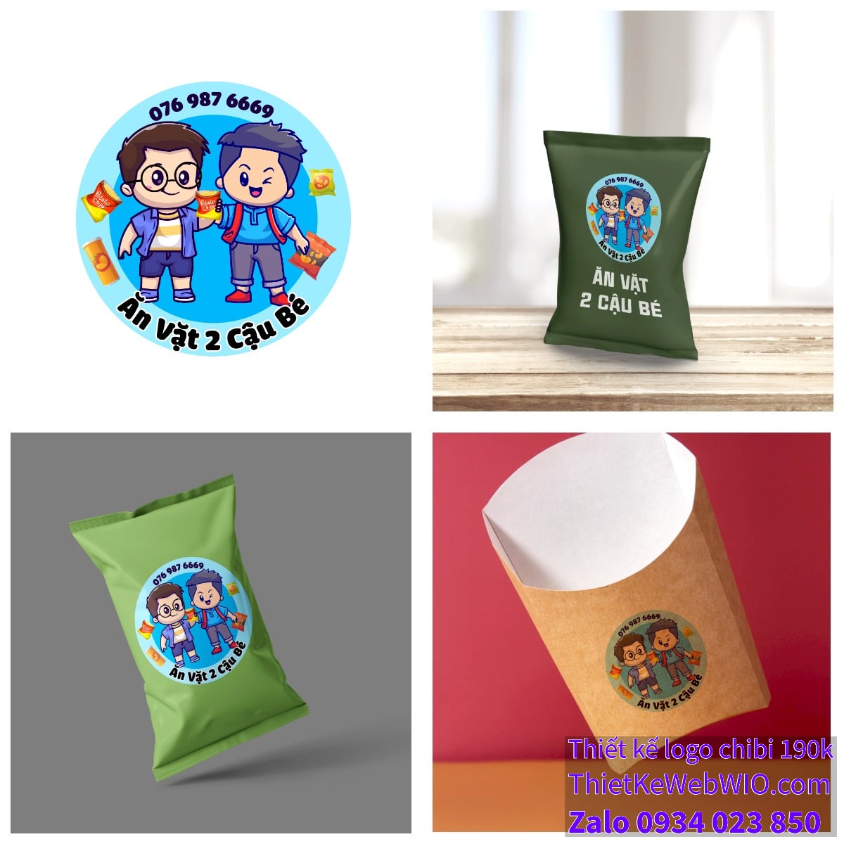 Tổng thể, tấm ảnh chibi này không chỉ mang lại cảm giác vui tươi, dễ thương mà còn thể hiện rõ ràng thông điệp và đặc trưng của cửa hàng “Ăn Vặt 2 Cậu Bé”. Đây là một thiết kế logo độc đáo và ấn tượng, chắc chắn sẽ thu hút sự chú ý của khách hàng.