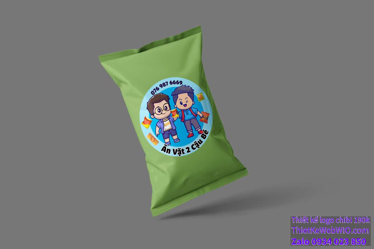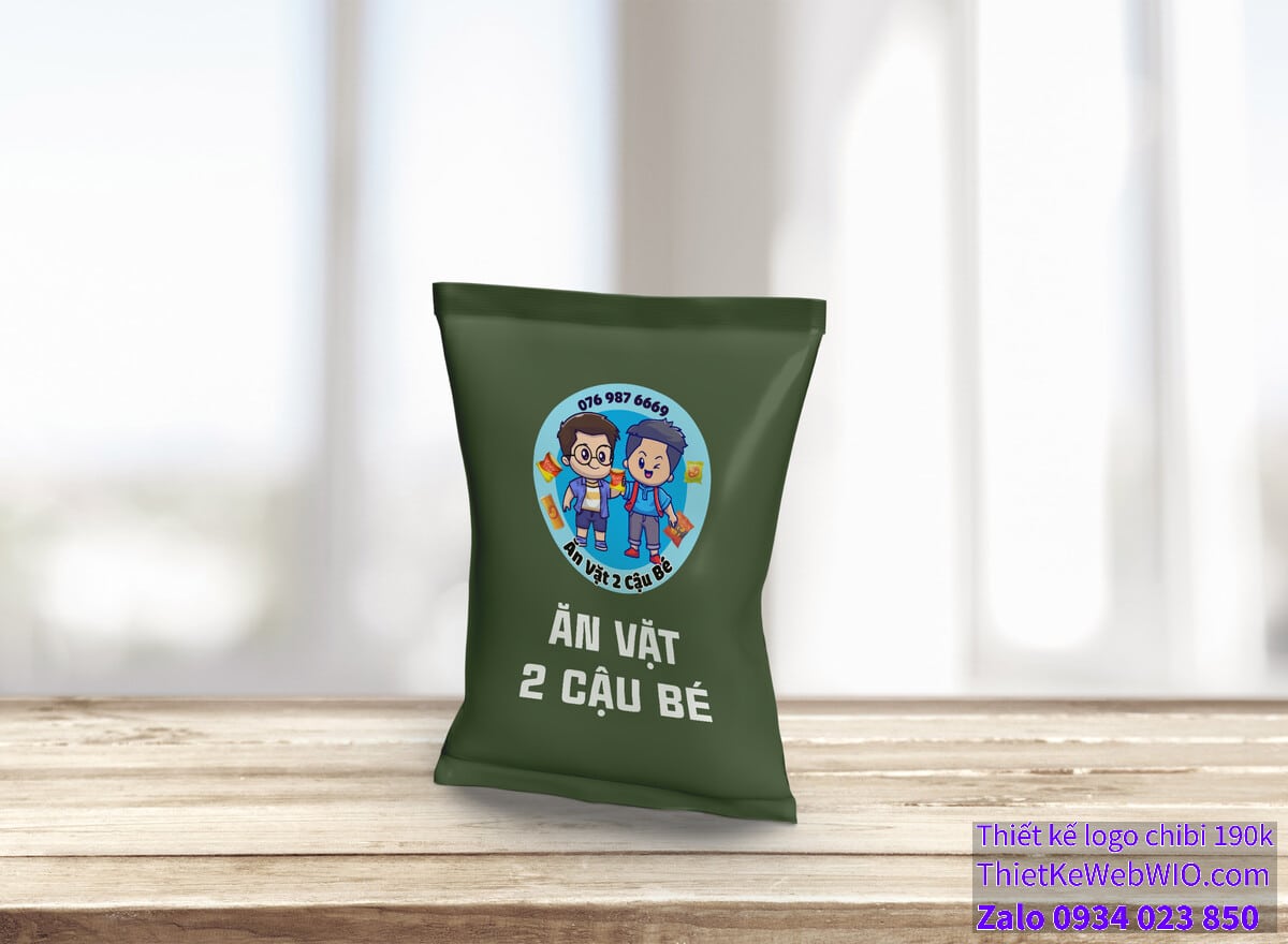 Tổng thể, tấm ảnh chibi này không chỉ mang lại cảm giác vui tươi, dễ thương mà còn thể hiện rõ ràng thông điệp và đặc trưng của cửa hàng “Ăn Vặt 2 Cậu Bé”. Đây là một thiết kế logo độc đáo và ấn tượng, chắc chắn sẽ thu hút sự chú ý của khách hàng.