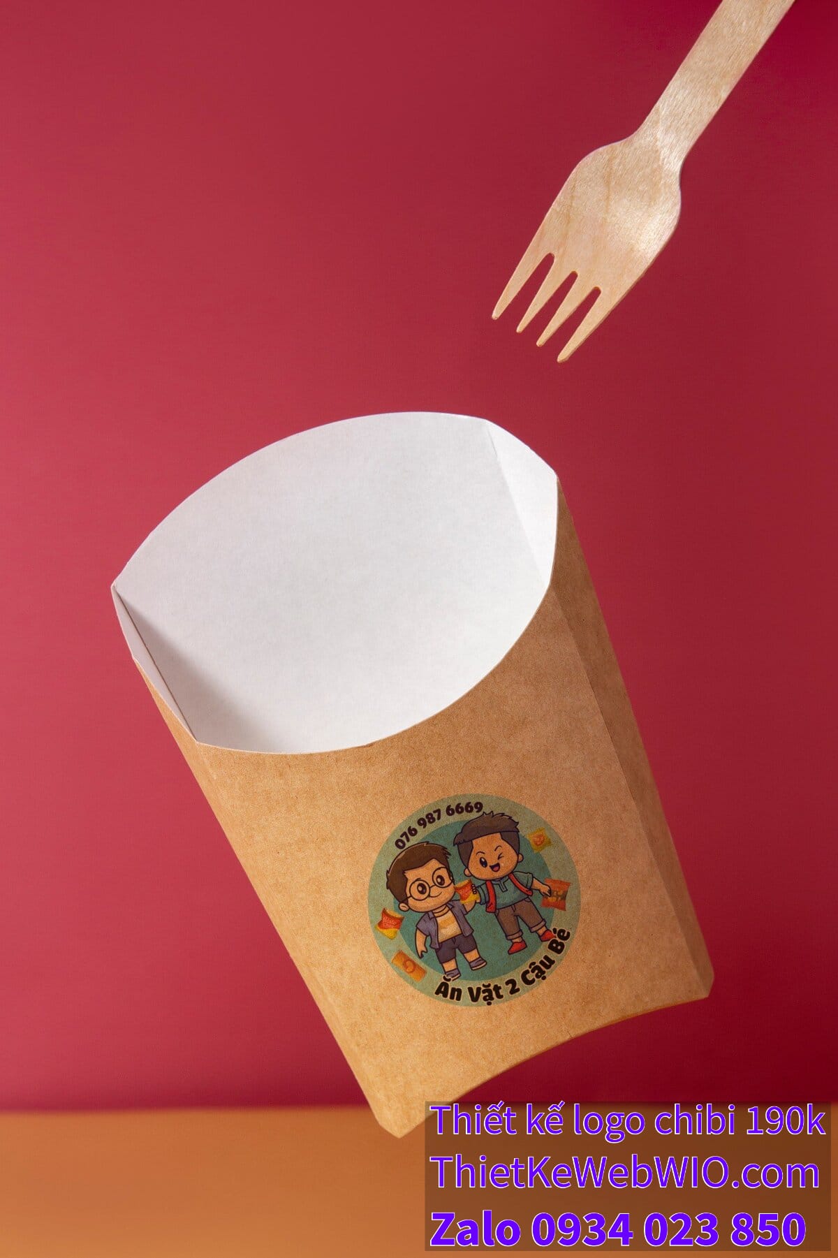 Vẽ chibi 2 cậu bé bán đồ ăn vặt để thiết kế logo