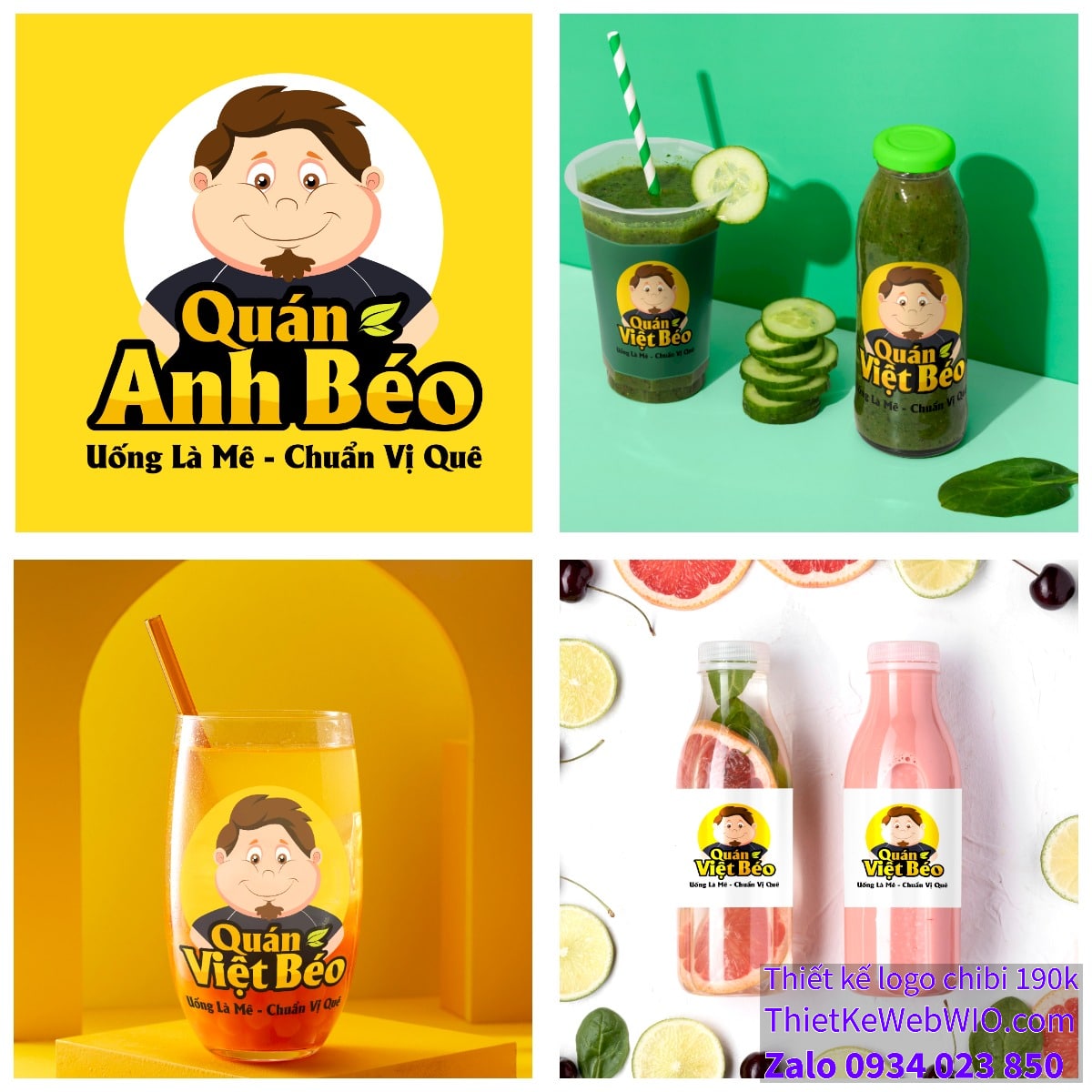 Vẽ chibi anh béo bán trà uống là mê để thiết kế logo