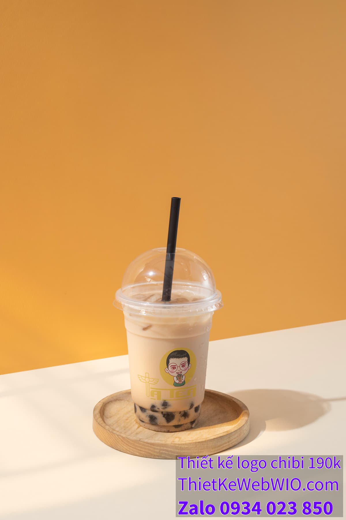 - Ly trà sữa trên tay cậu bé được vẽ chi tiết với những hạt trân châu đen đặc trưng, thể hiện rõ ràng sản phẩm chính của thương hiệu. Đây là điểm nhấn quan trọng, giúp người xem dễ dàng nhận biết loại hình kinh doanh mà logo đại diện.