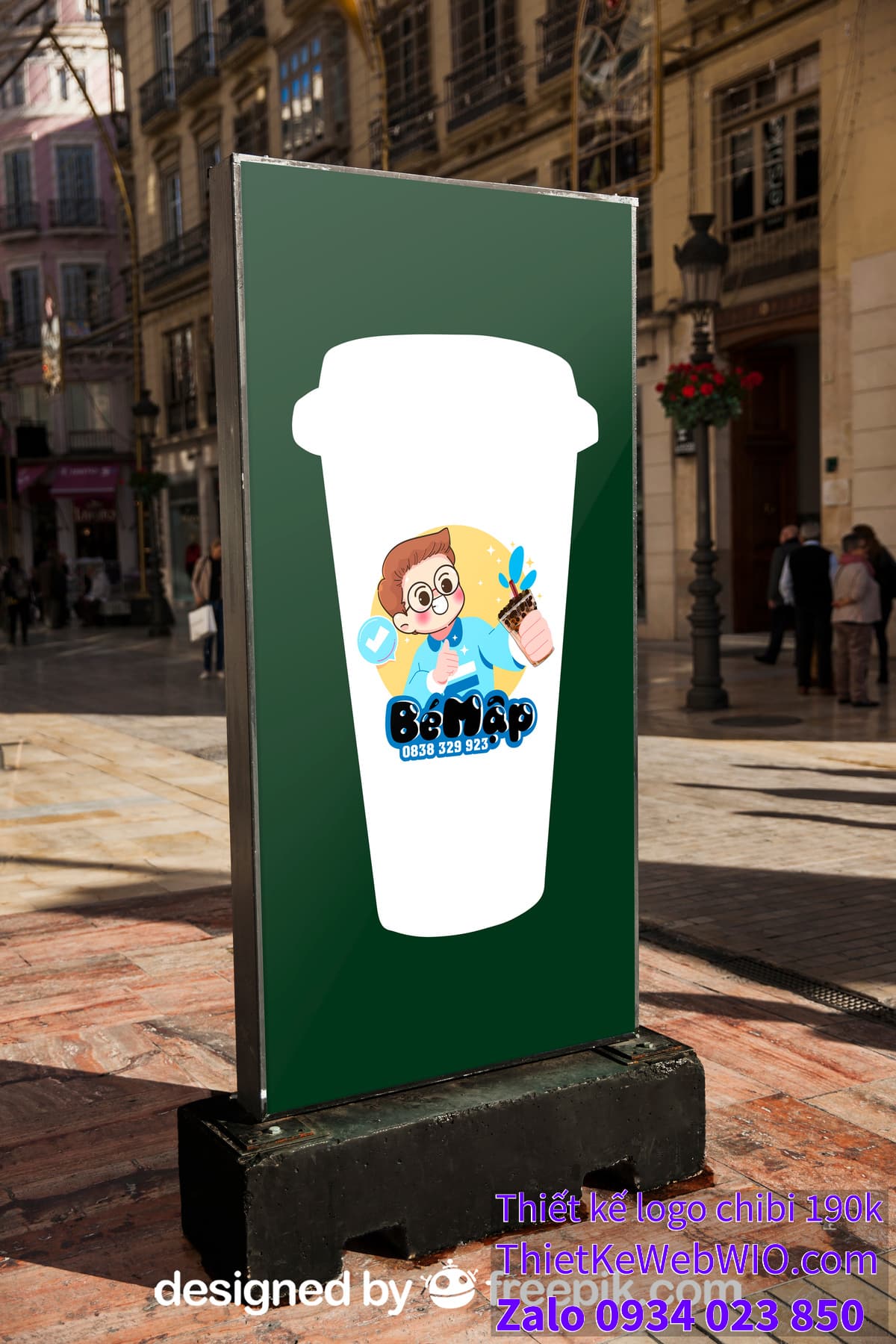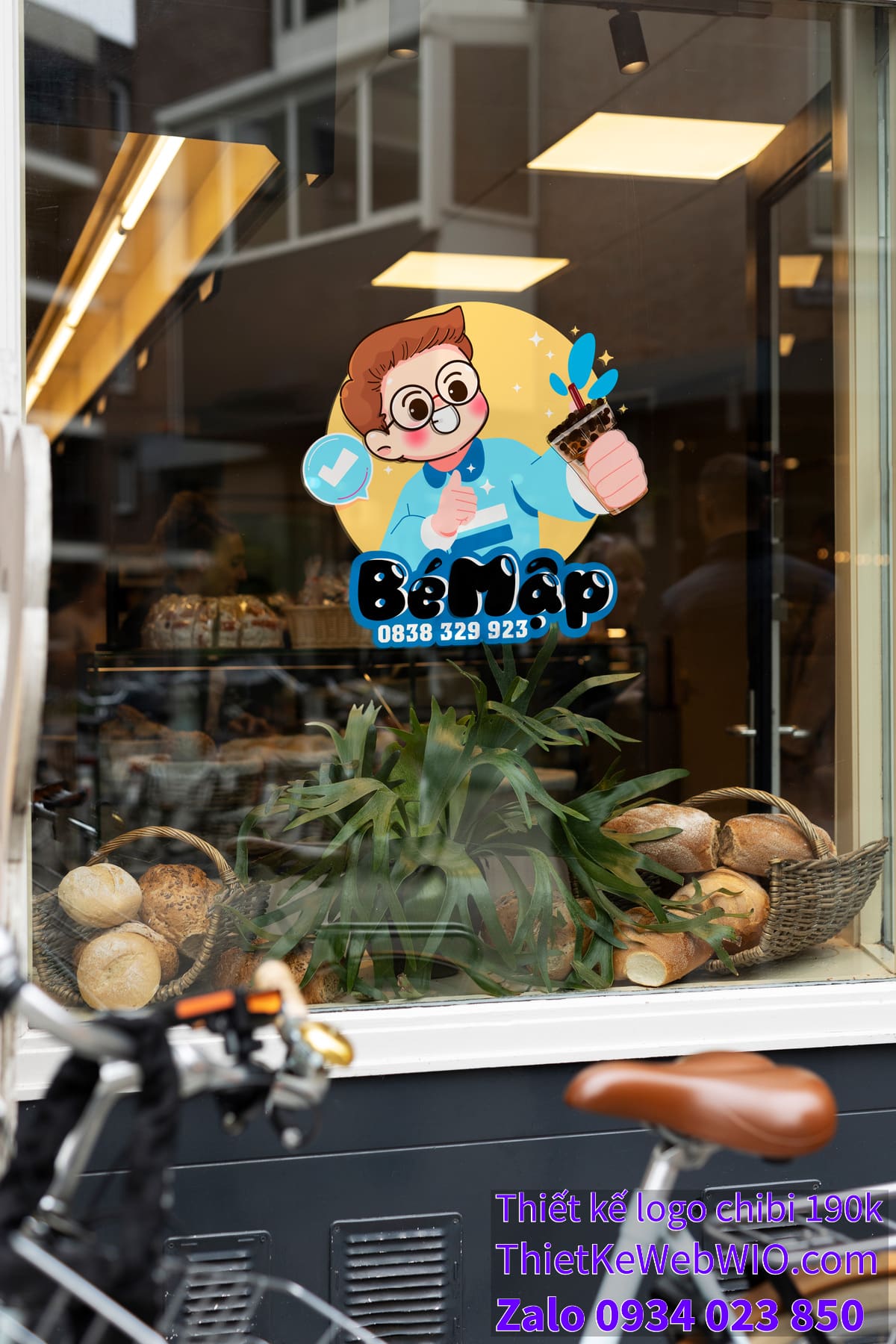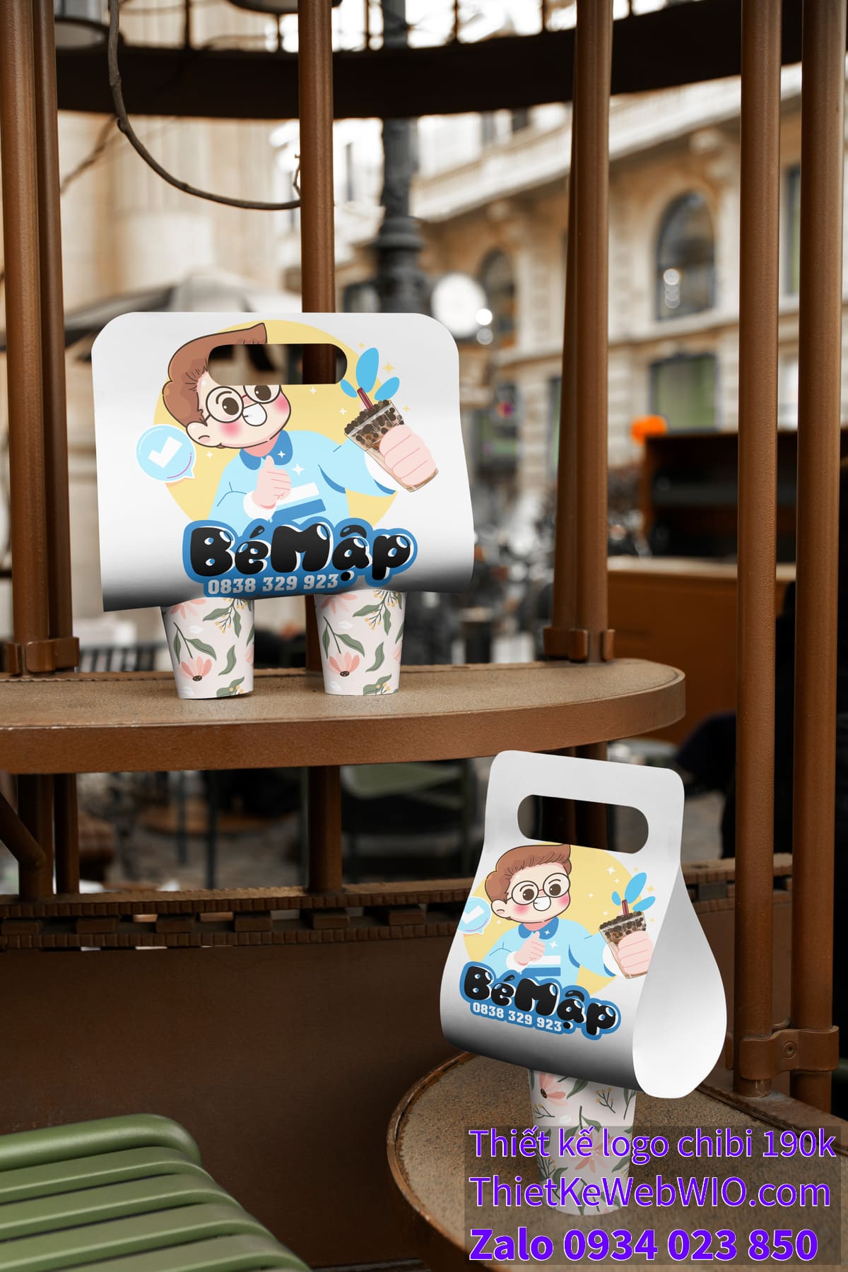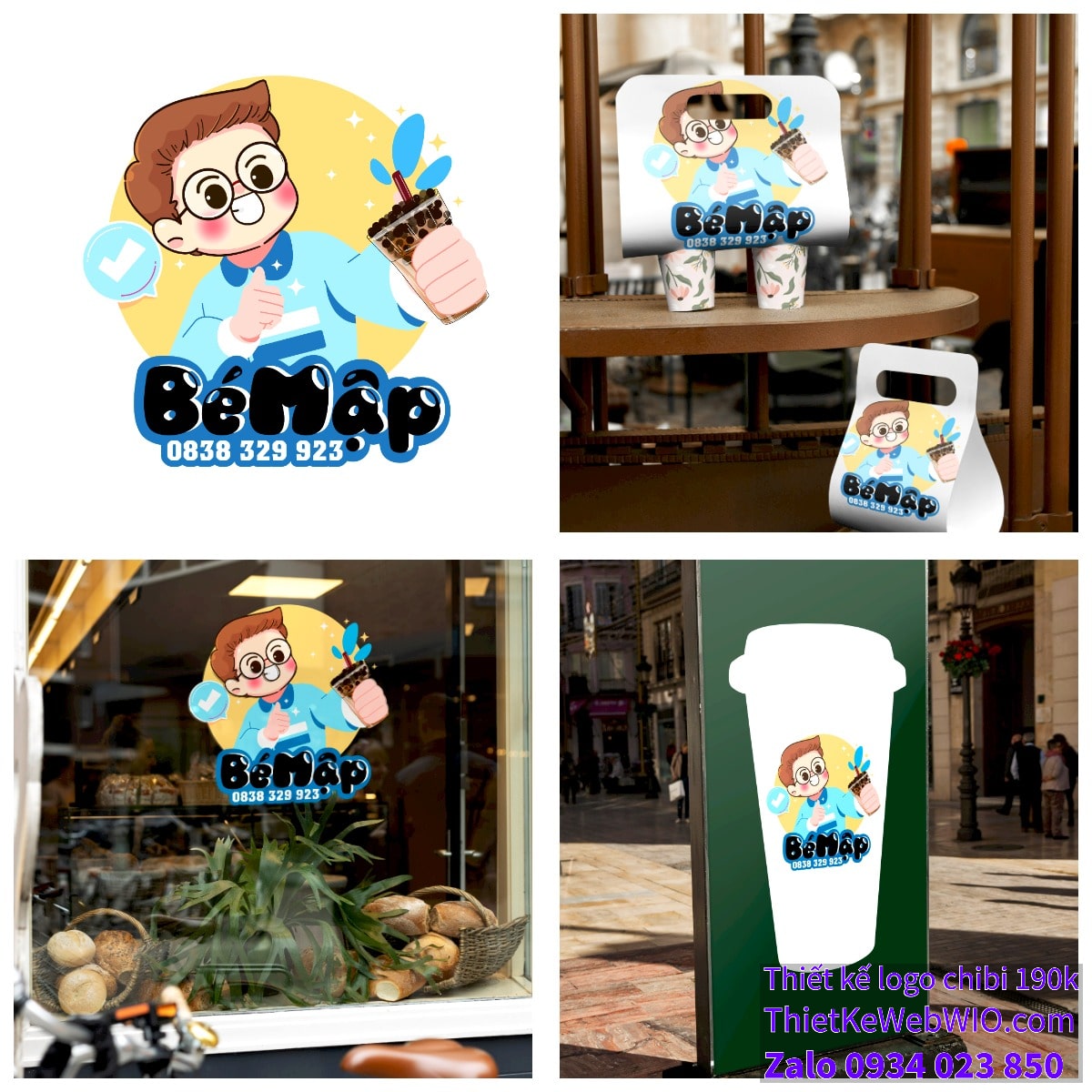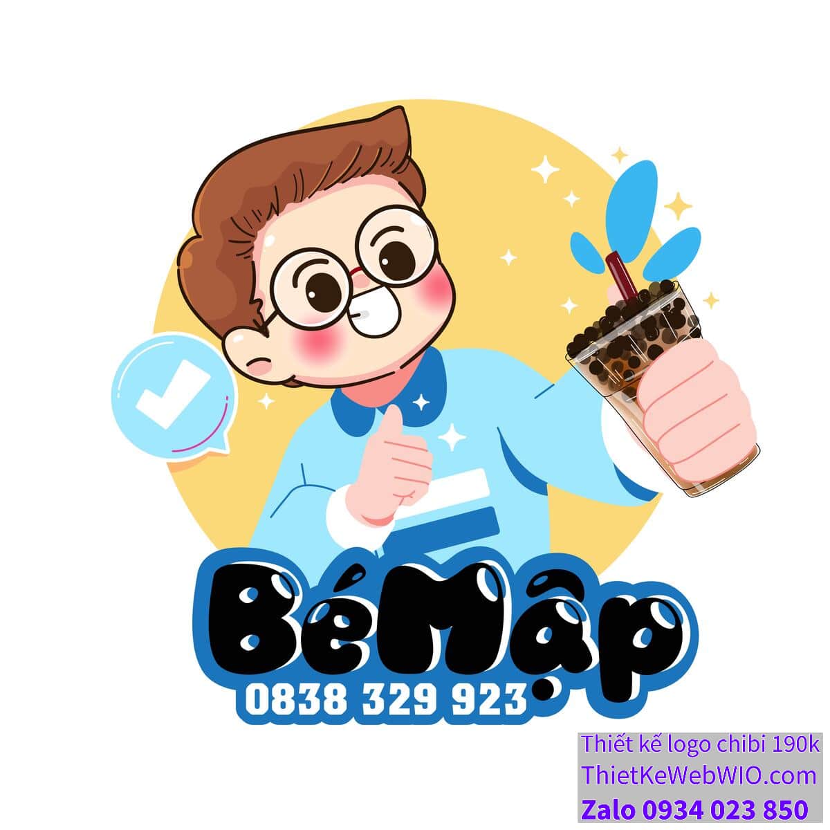 - Tên Thương Hiệu: Dưới cùng của bức ảnh chibi cậu bé mặc áo xanh đang cầm trà sữa cười thích thú có dòng chữ “Bé Mập” được viết bằng kiểu chữ tròn, đầy đặn và dễ thương, màu sắc đậm để dễ nhìn.