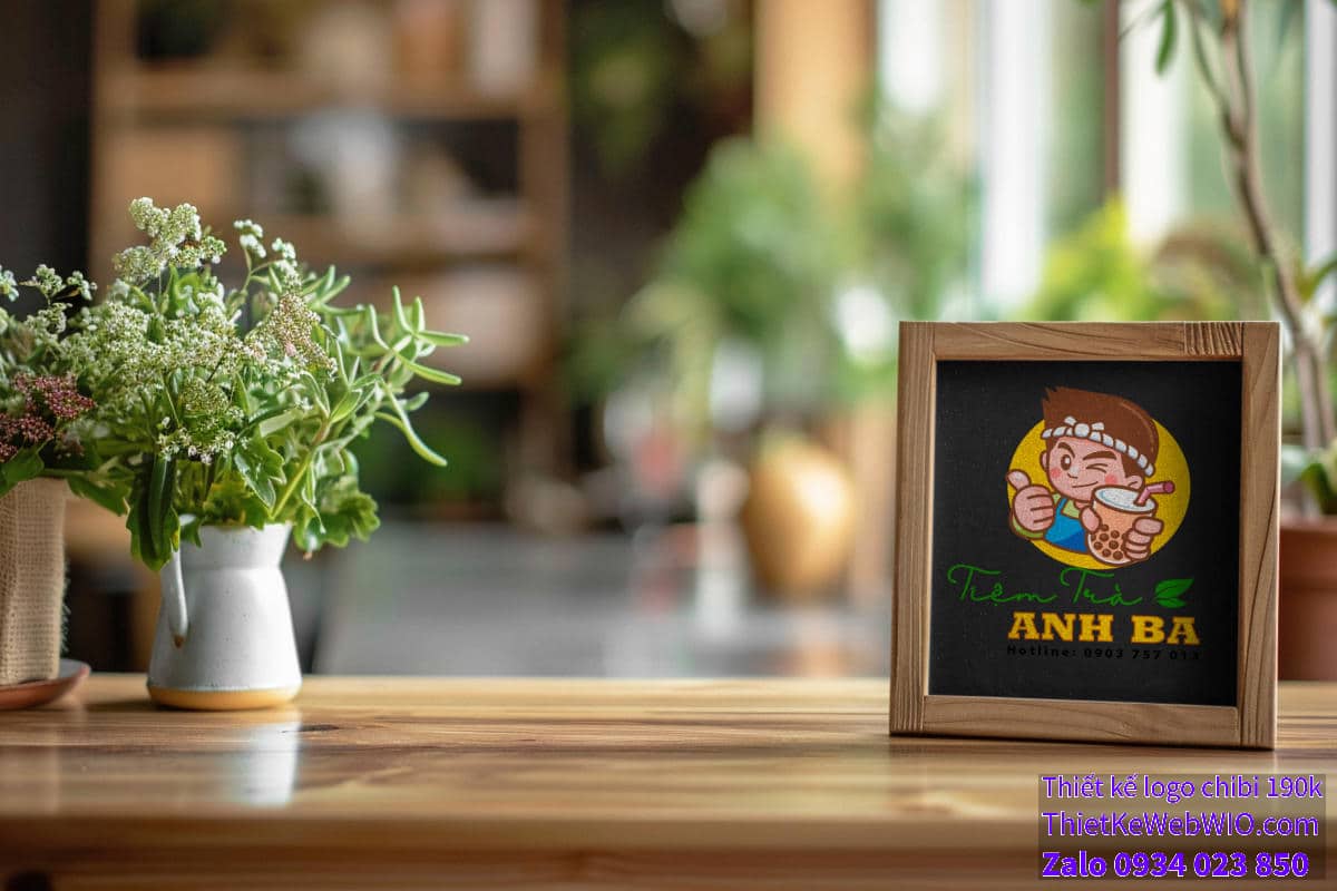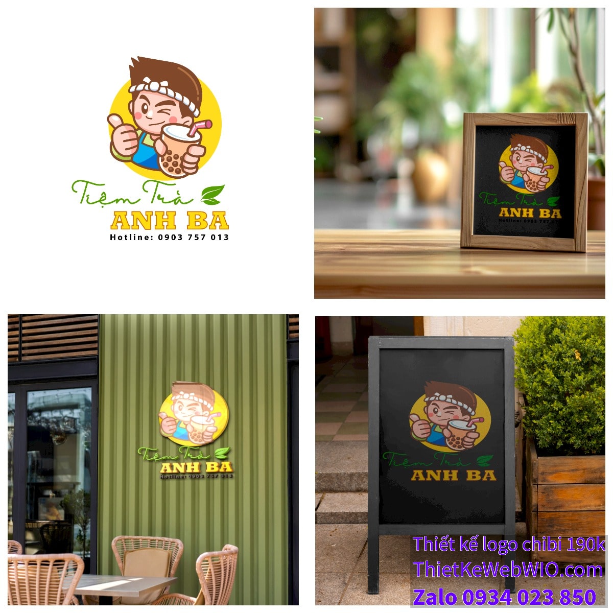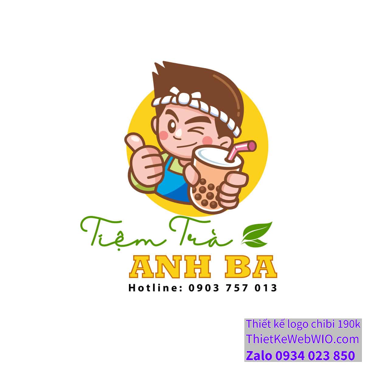 Logo “Tiệm Trà Anh Ba” với hình ảnh chibi cậu bé năng động cầm ly trà sữa không chỉ là biểu tượng cho thương hiệu mà còn truyền tải thông điệp về sự thân thiện, chất lượng và sự tươi mới. Đây là một thiết kế hoàn hảo để thu hút sự chú ý của khách hàng, đặc biệt là các bạn trẻ yêu thích trà sữa.