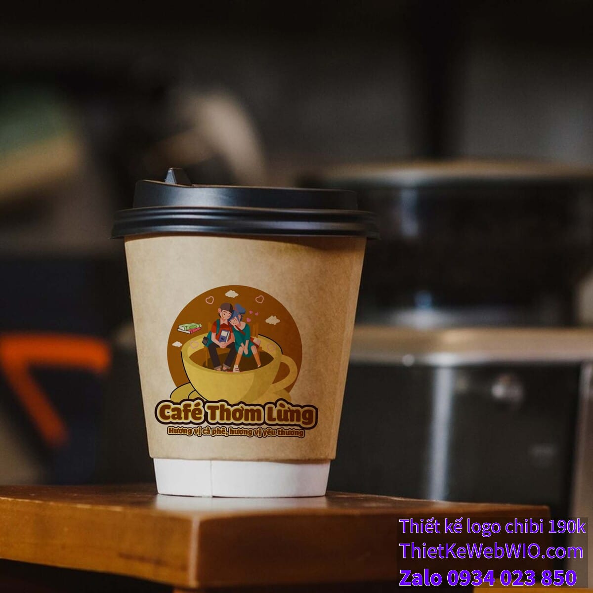 - Tên quán cà phê: “Café Thơm Lừng” được viết rõ ràng, dễ đọc với màu sắc nổi bật. Phần slogan “Hương vị cà phê, hương vị yêu thương” cũng được thể hiện một cách tinh tế và ấn tượng, nhấn mạnh sự kết hợp giữa cà phê và tình yêu thương.