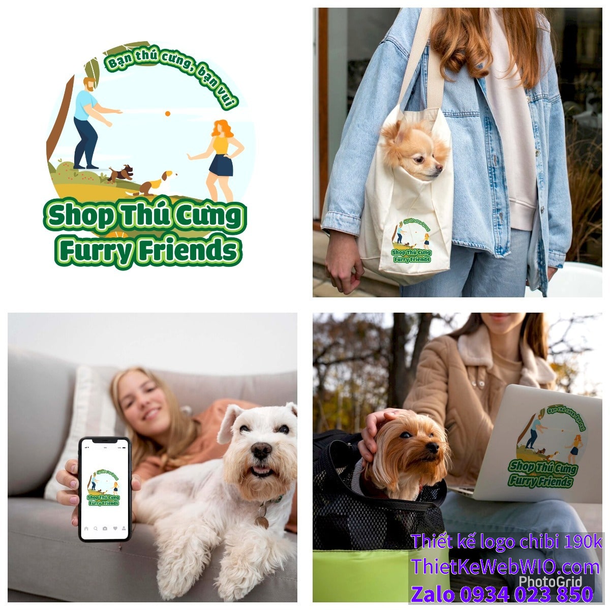 Tấm ảnh này không chỉ truyền tải thông điệp về niềm vui và sự kết nối mà còn thể hiện sự chuyên nghiệp trong thiết kế và sáng tạo của “Shop Thú Cưng Furry Friends”. Đây là một ví dụ tuyệt vời về cách sử dụng nghệ thuật chibi để tạo nên hình ảnh thương hiệu dễ nhớ và thân thiện.