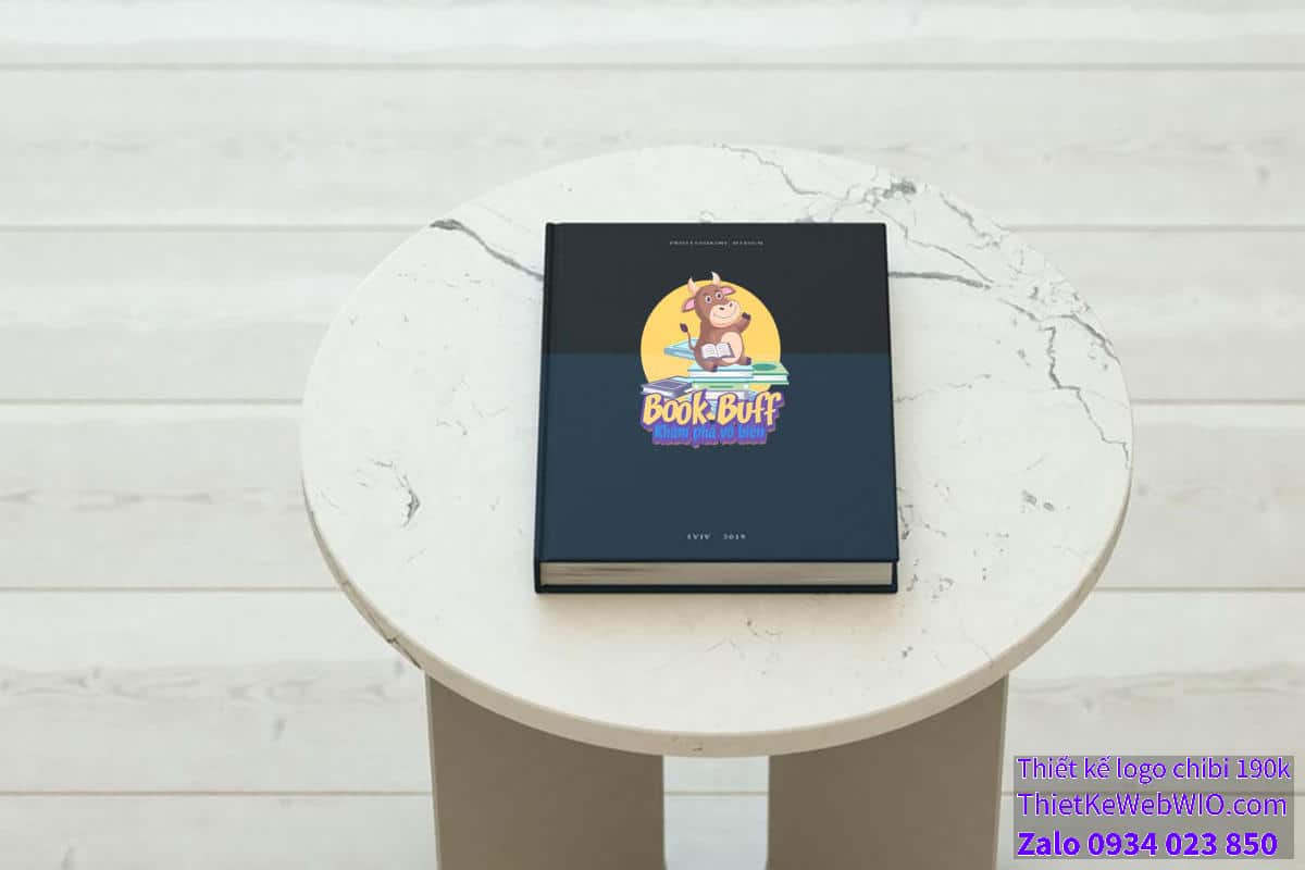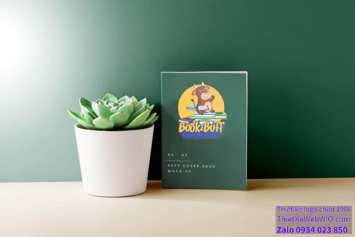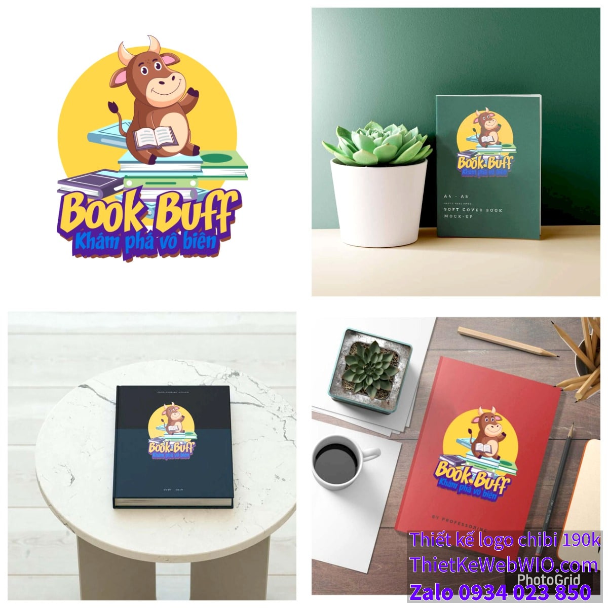 - Tên: “Book Buff” được viết bằng font chữ lớn, màu vàng, viền tím, rất nổi bật.