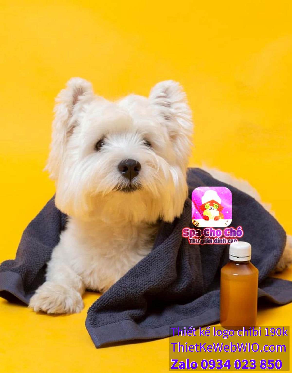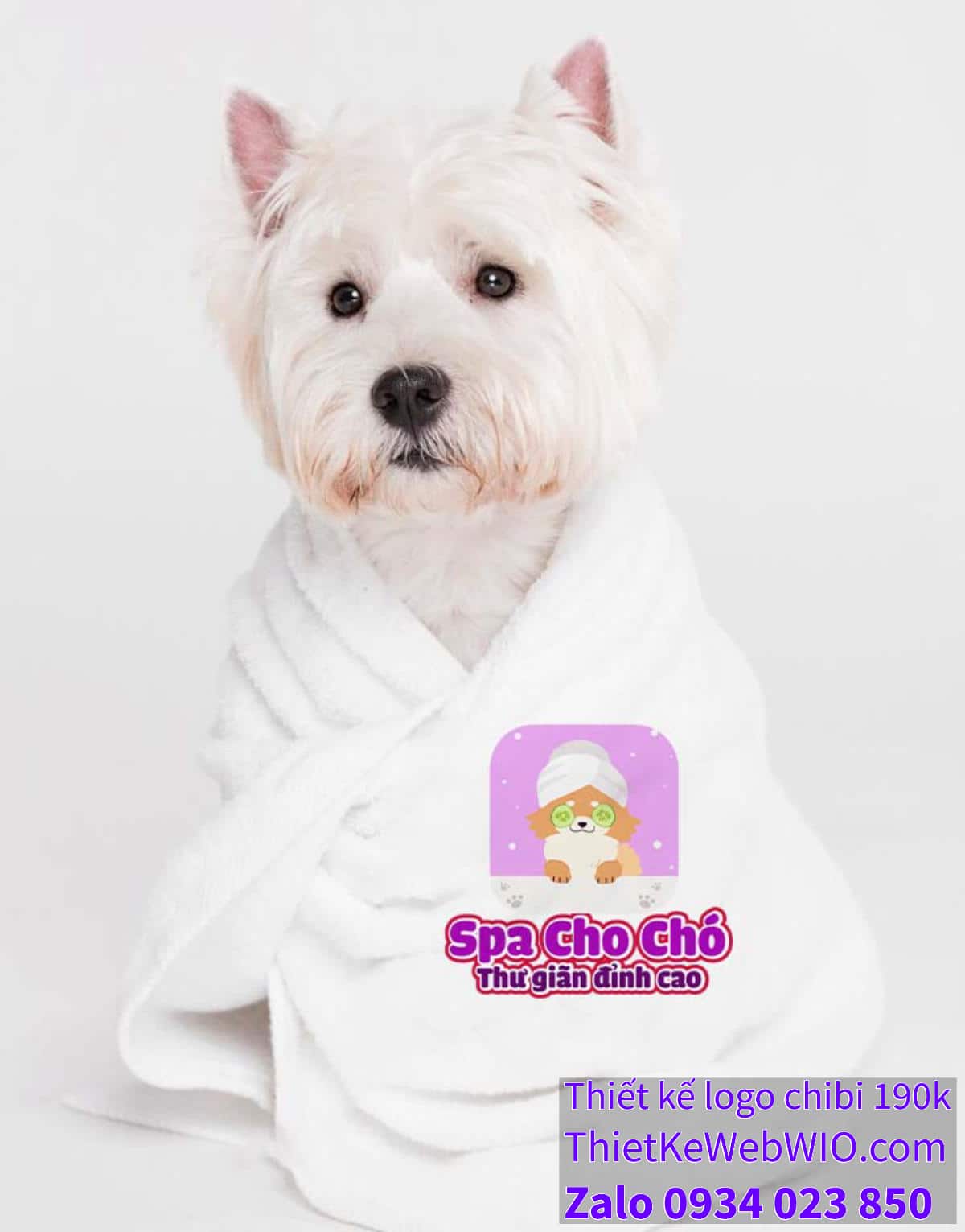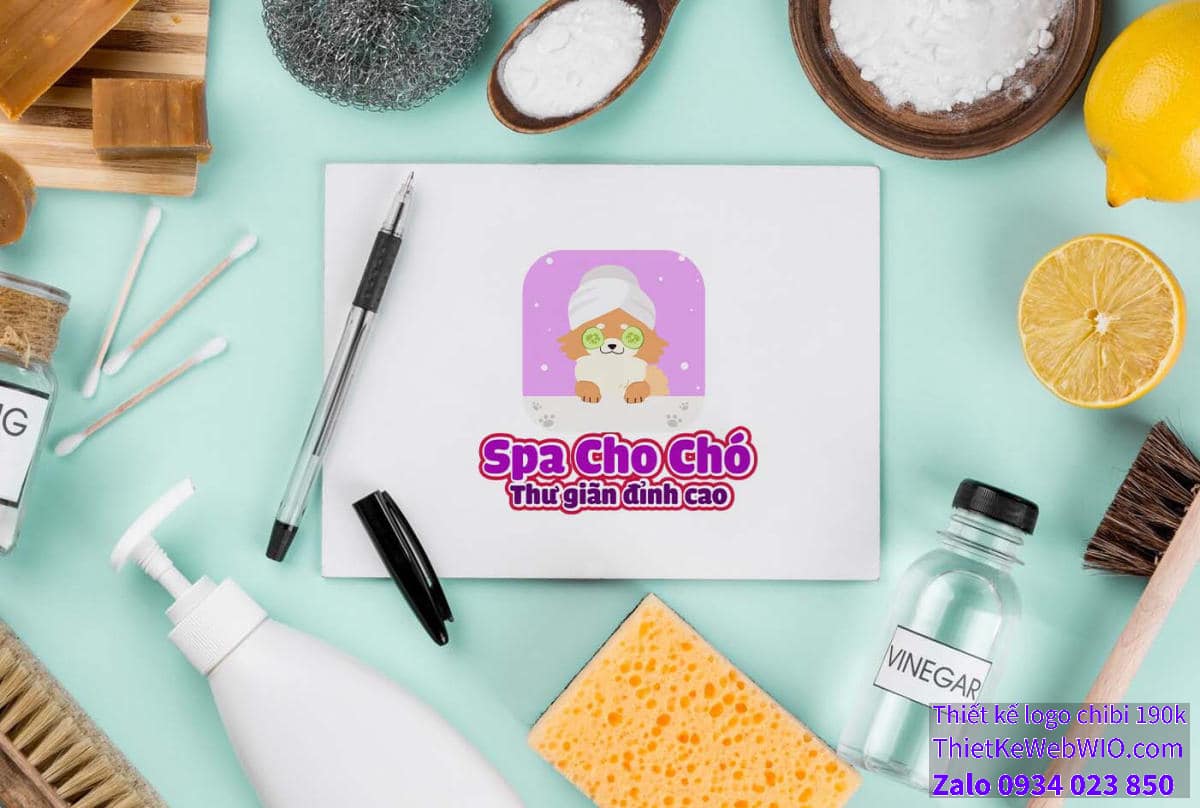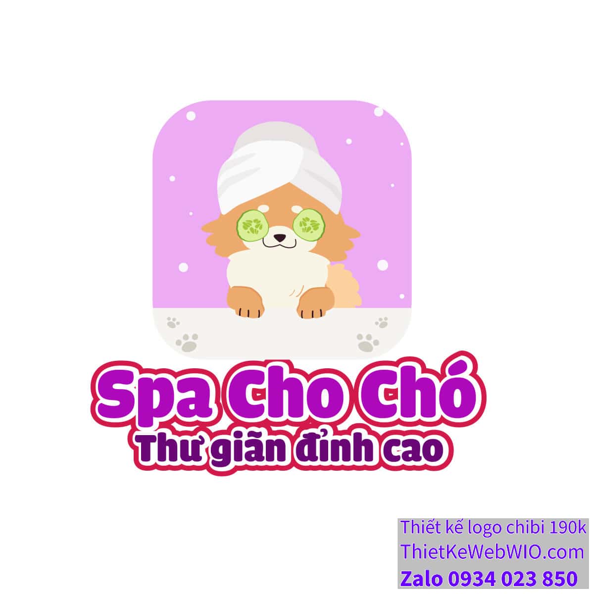 - Tên spa: “Spa Cho Chó” được viết bằng chữ in đậm, màu tím, nổi bật trên nền trắng.