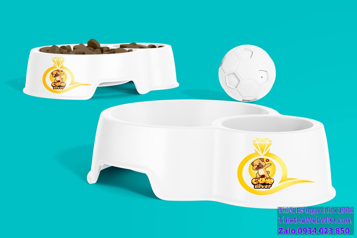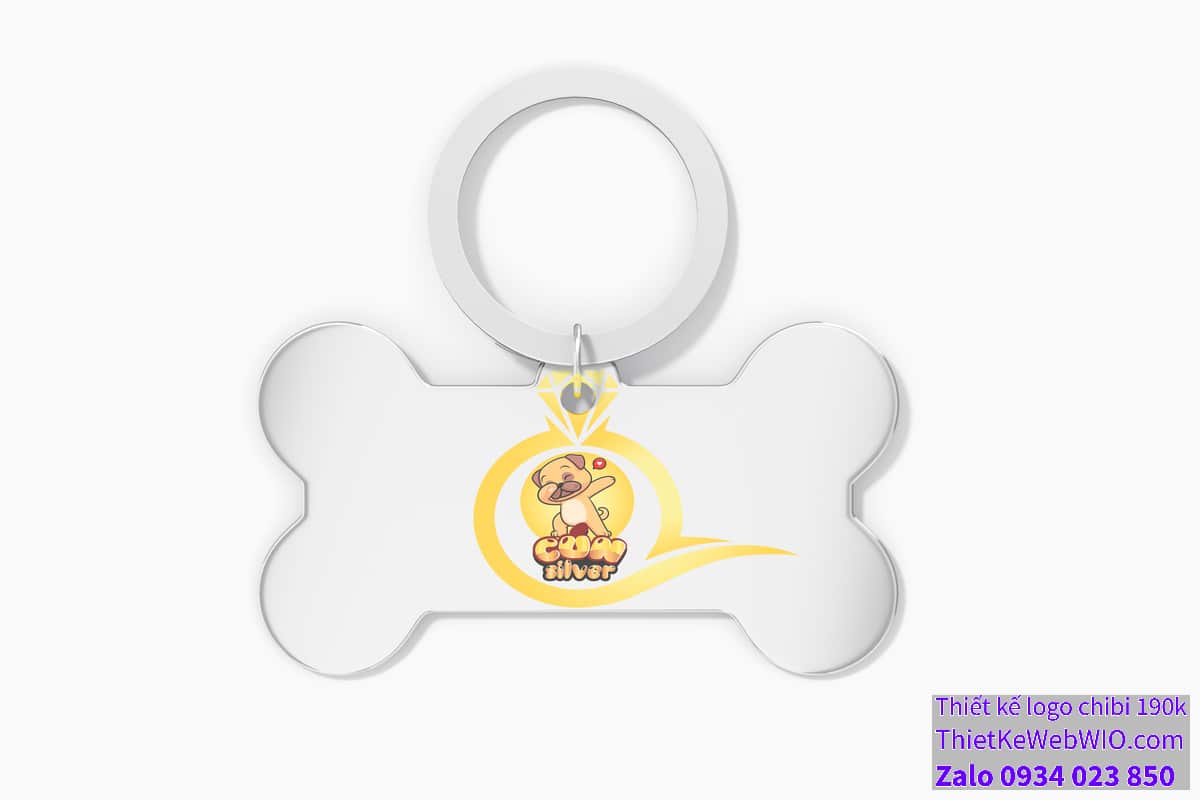 - Dưới chân chú chó là dòng chữ “Cún silver”, với từ “Cún” được viết bằng phông chữ mềm mại, bo tròn, tạo cảm giác dễ thương và thân thiện. Từ “silver” được viết nhỏ hơn, nhưng vẫn nổi bật với màu vàng và trắng.