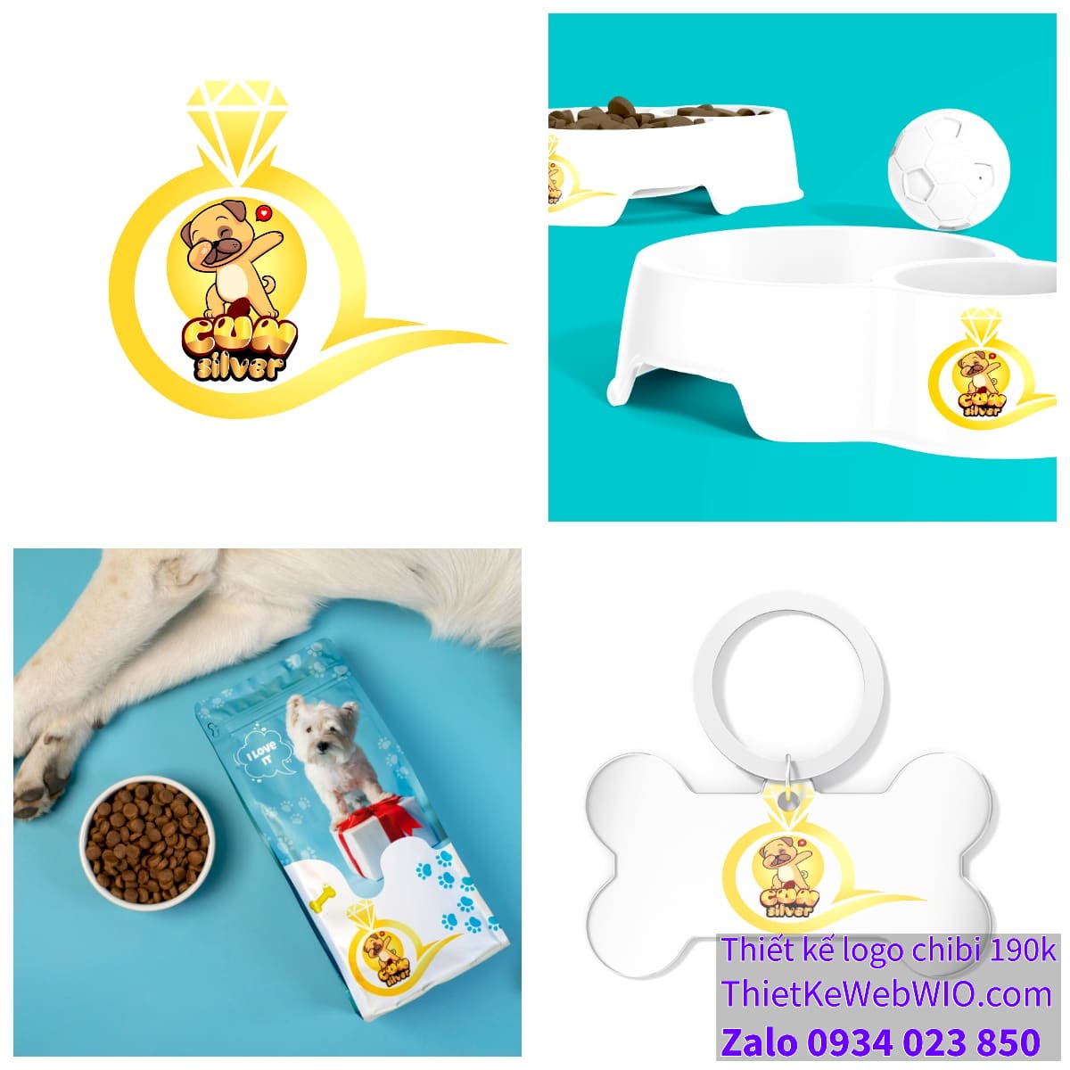 - Dưới chân chú chó là dòng chữ “Cún silver”, với từ “Cún” được viết bằng phông chữ mềm mại, bo tròn, tạo cảm giác dễ thương và thân thiện. Từ “silver” được viết nhỏ hơn, nhưng vẫn nổi bật với màu vàng và trắng.