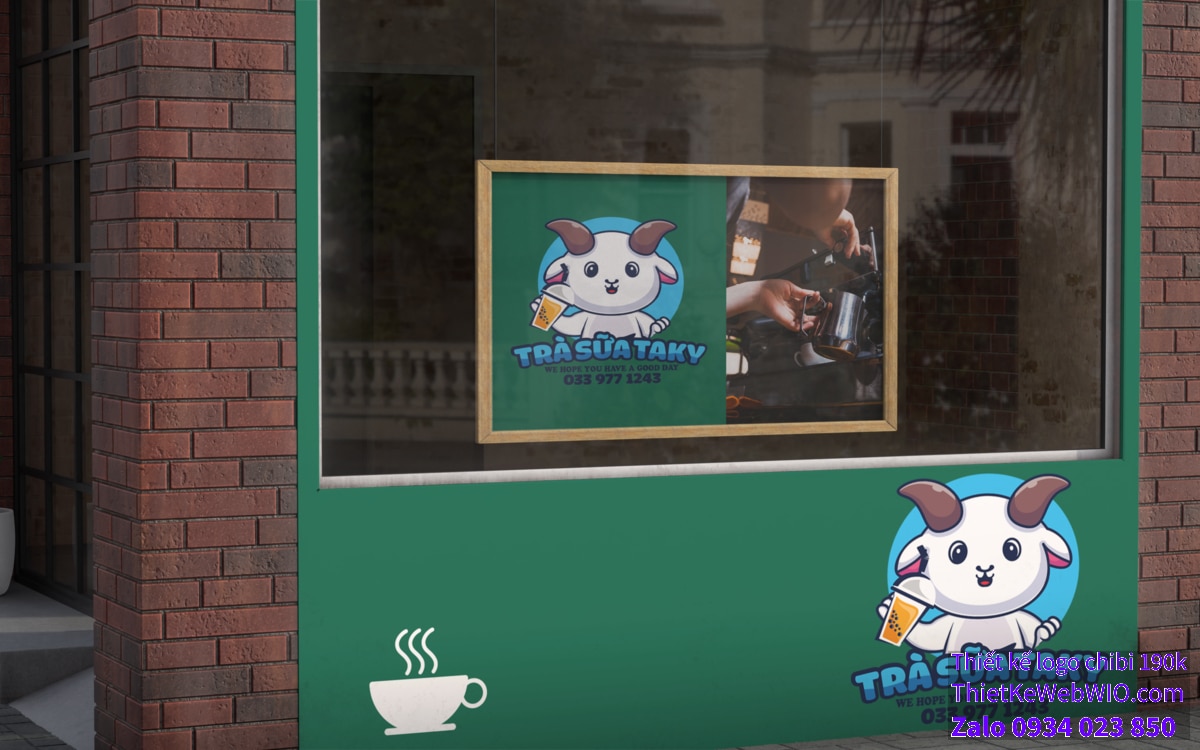 Vẽ chibi chú cừu trắng dễ thương đang cầm trà sữa để thiết kế logo