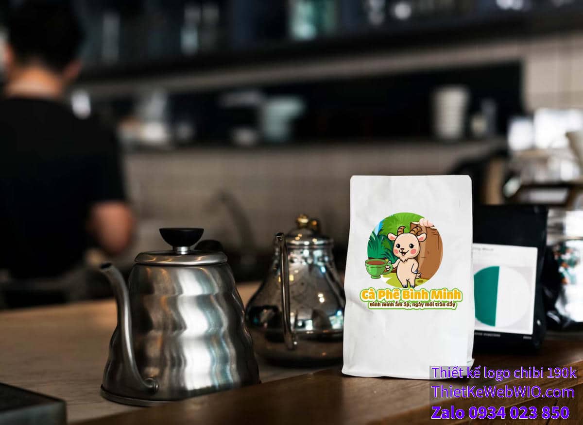 - Logo: “Cà Phê Bình Minh” được viết bằng font chữ mềm mại, màu vàng nổi bật.