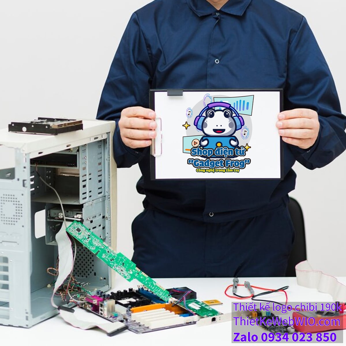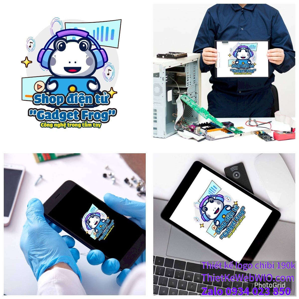 Tấm ảnh này không chỉ là một biểu tượng đáng yêu mà còn truyền tải thông điệp về một shop điện tử hiện đại, năng động và đầy sáng tạo. Chú ếch chibi với các biểu tượng công nghệ xung quanh tạo nên một hình ảnh tươi mới và dễ nhớ, thu hút sự chú ý của khách hàng, đặc biệt là các bạn trẻ yêu thích công nghệ và các sản phẩm điện tử.