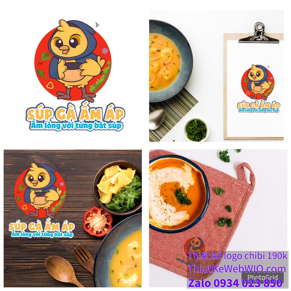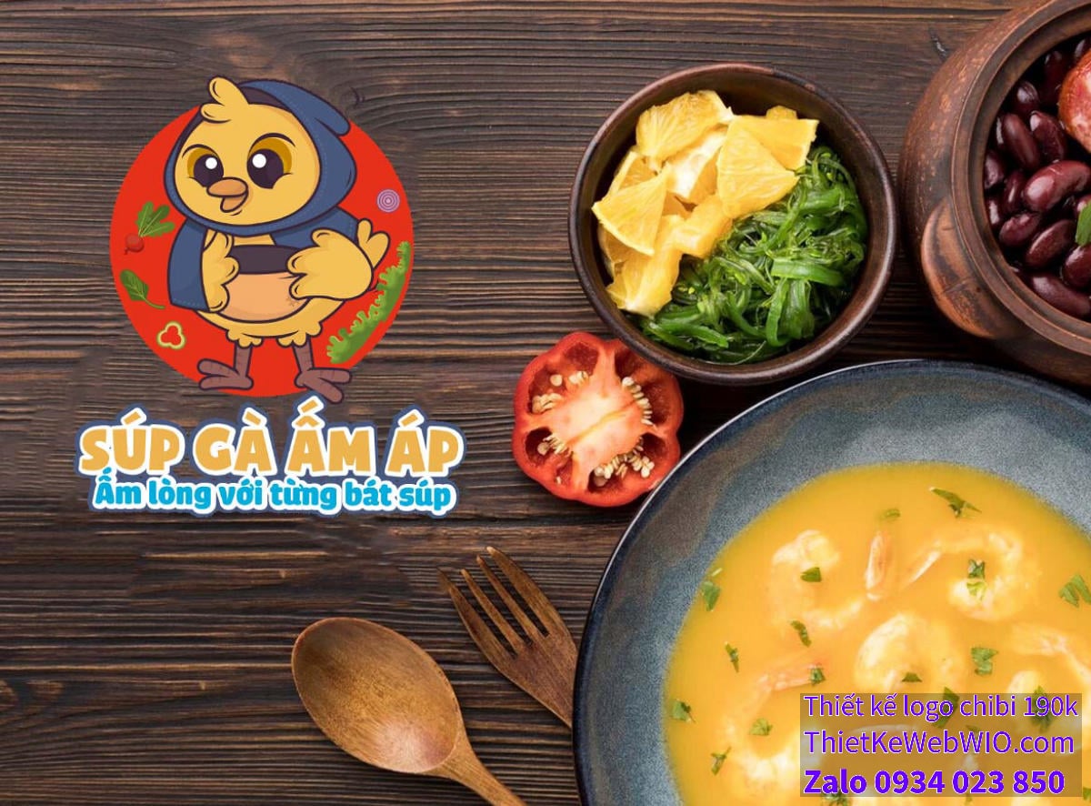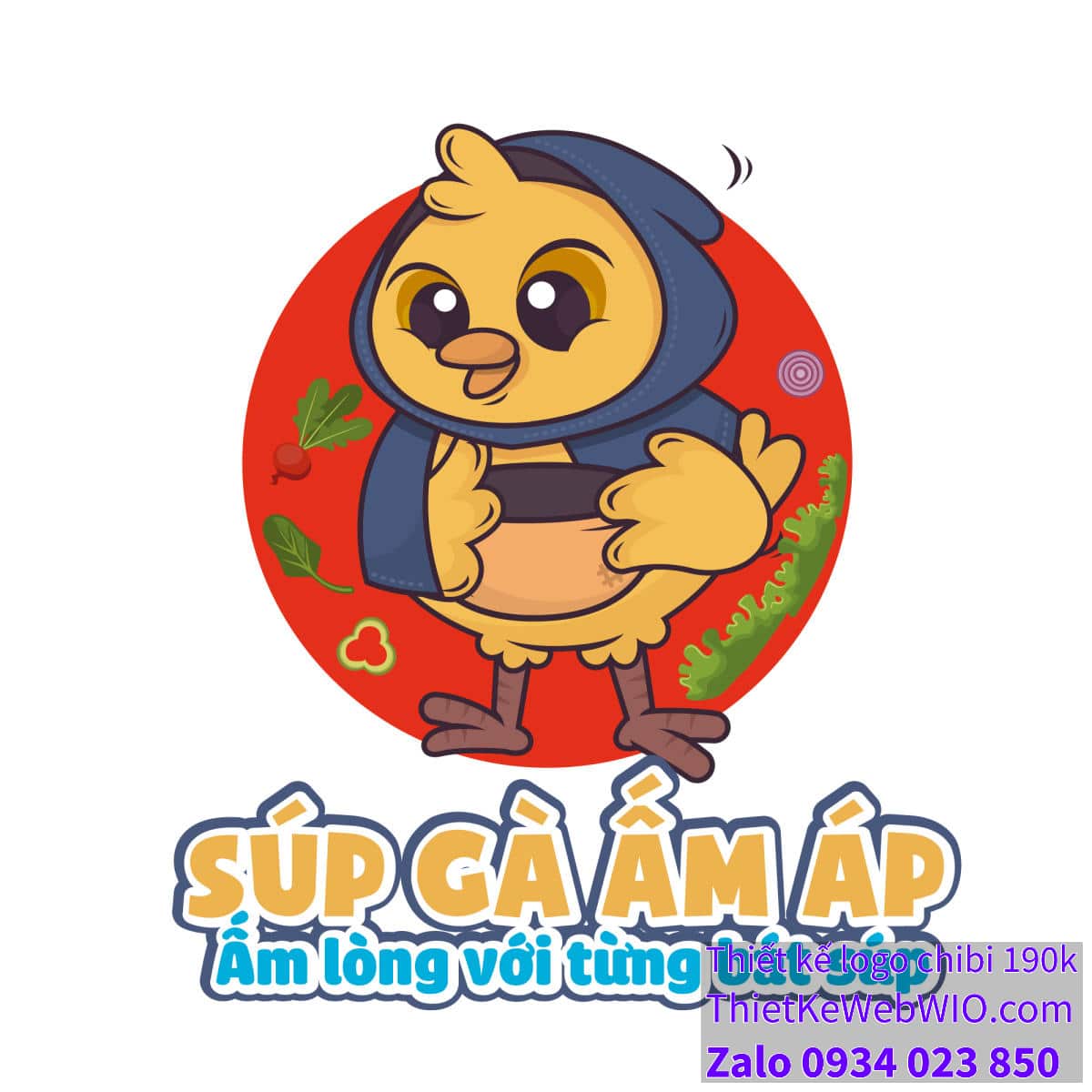 Chi Tiết chibi chú gà ấm áp đội khăn xanh bán súp gà