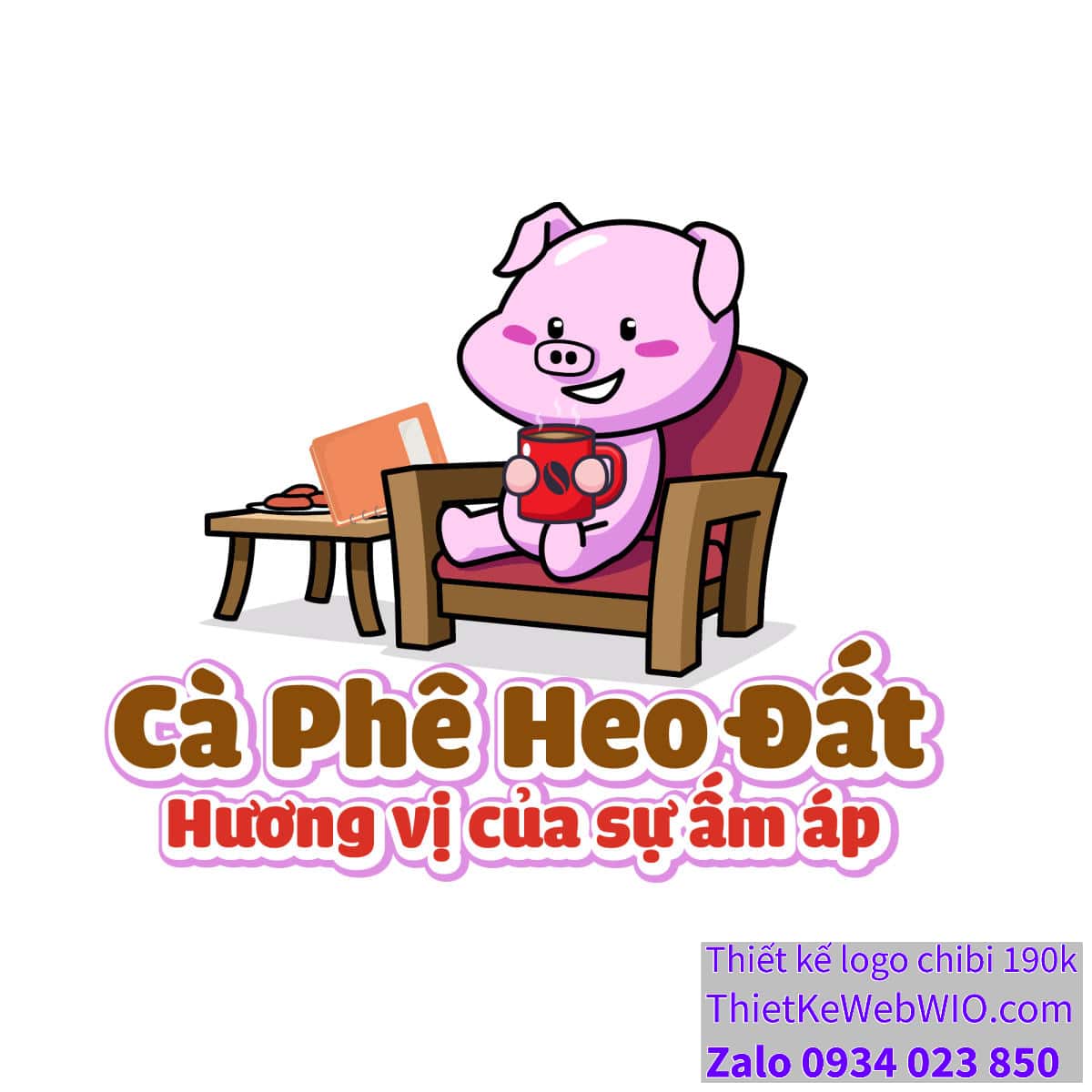 Hình ảnh chibi chú heo con dễ thương đang uống cà phê trên ghế sô pha là một bức tranh đầy màu sắc và đáng yêu với chủ đề “Cà Phê Heo Đất”. Trong bức tranh, một chú heo màu hồng đang ngồi trên ghế bành, tay cầm một tách cà phê và nở nụ cười rạng rỡ. Dưới chân chú heo là dòng chữ “Cà Phê Heo Đất” và slogan “Hương vị của sự ấm áp”.