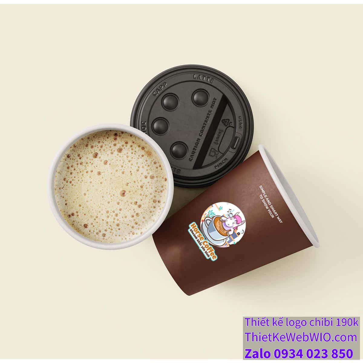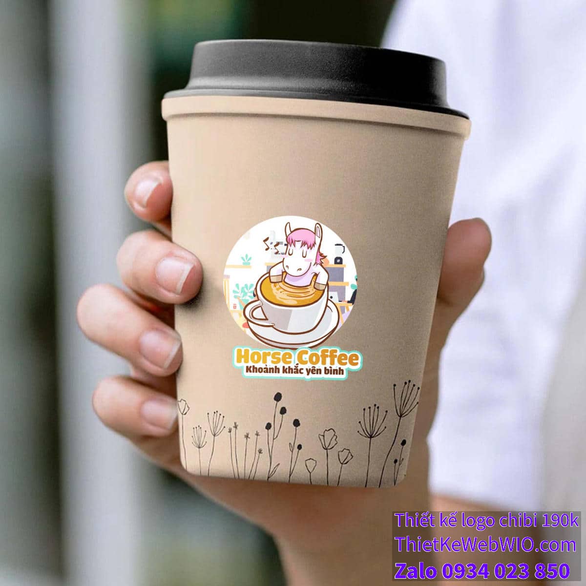 Tổng thể: Tách cà phê chiếm phần lớn khung hình, làm nền cho chú ngựa chibi.