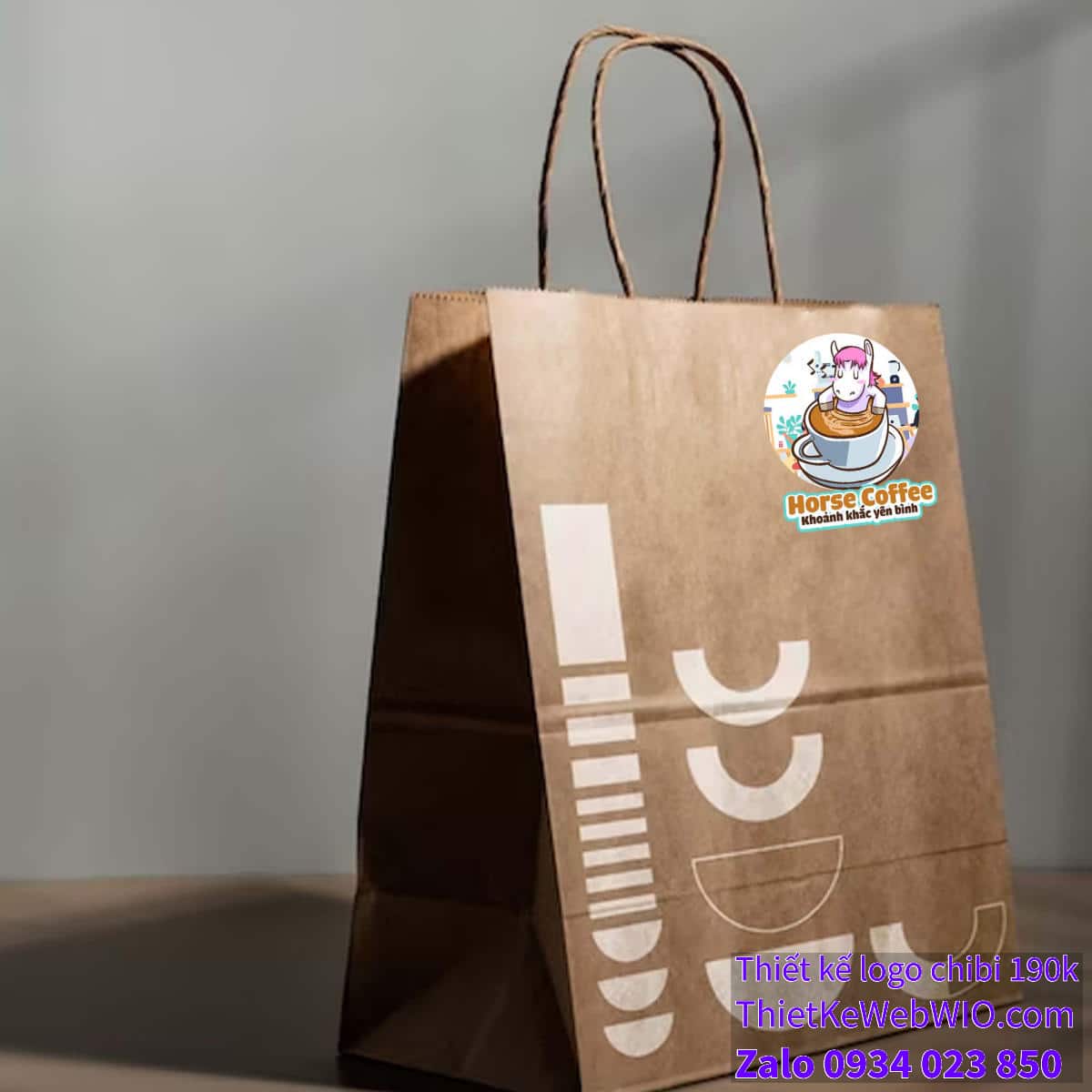 Thiết kế chữ: Chữ “Horse Coffee” được viết in đậm với màu cam nổi bật, chữ “Khoảnh khắc yên bình” được viết bằng màu nâu, tạo cảm giác dễ chịu và hài hòa.