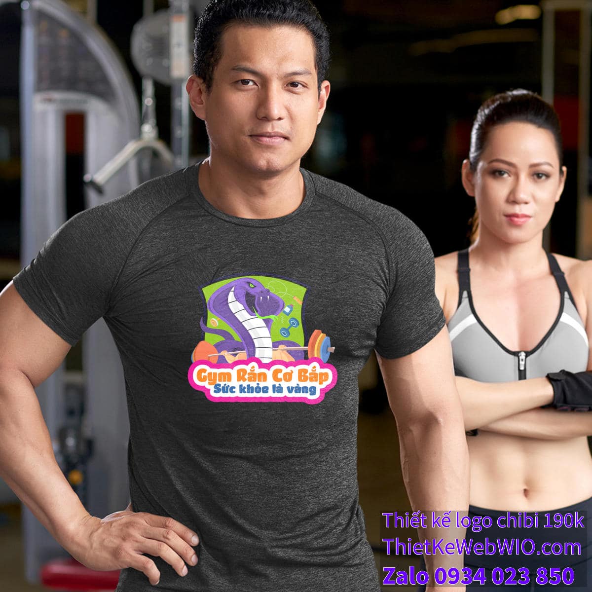 - Khẩu hiệu: Bên dưới tên Gym là khẩu hiệu “Sức khỏe là vàng” với màu xanh dương, tạo điểm nhấn mạnh mẽ cho thông điệp của hình ảnh.
