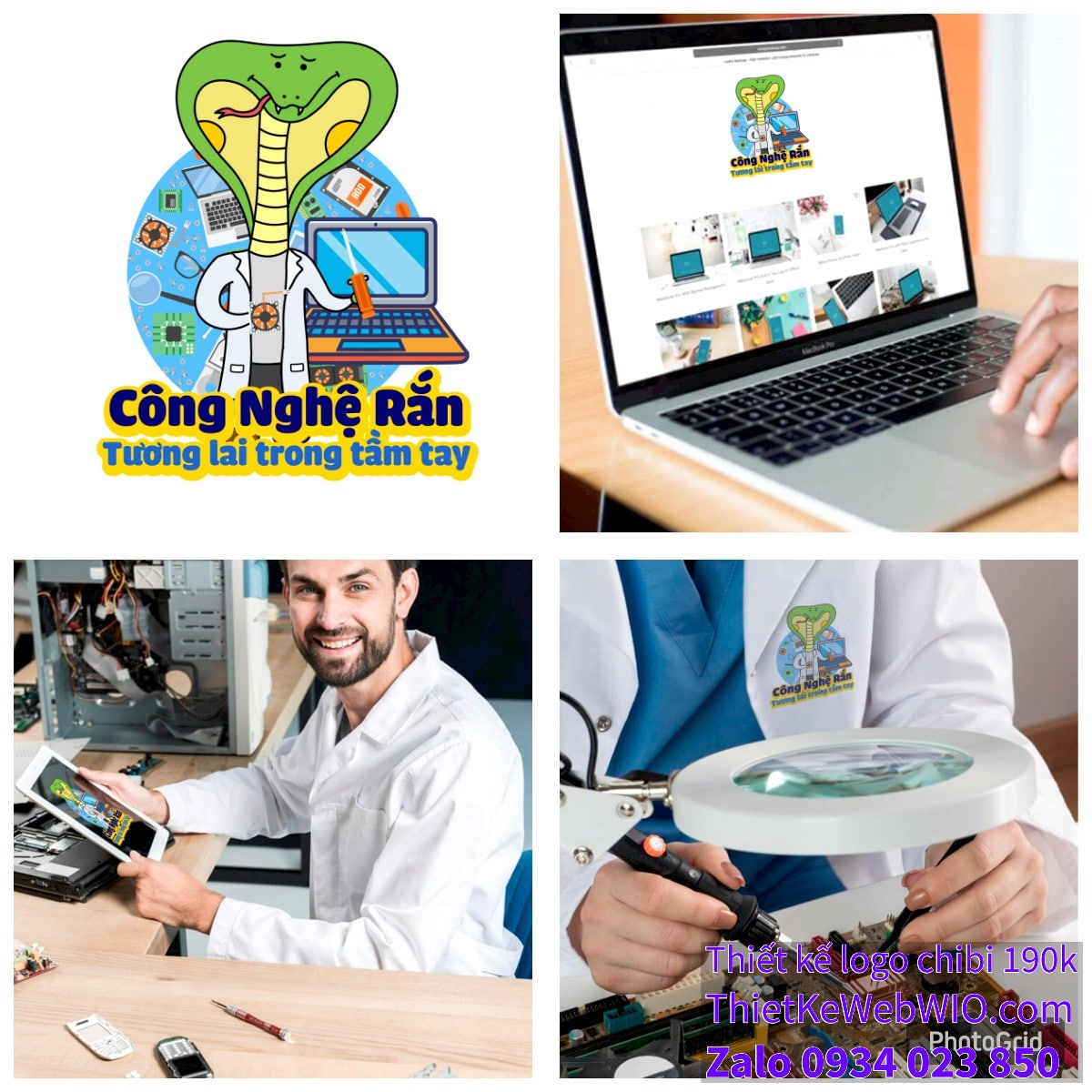 - Tên công ty: Phía dưới hình ảnh chibi chú rắn đầu xanh thân vàng đang thí nghiệm công nghệ là dòng chữ “Công Nghệ Rắn” được viết đậm và nổi bật với màu xanh và vàng.