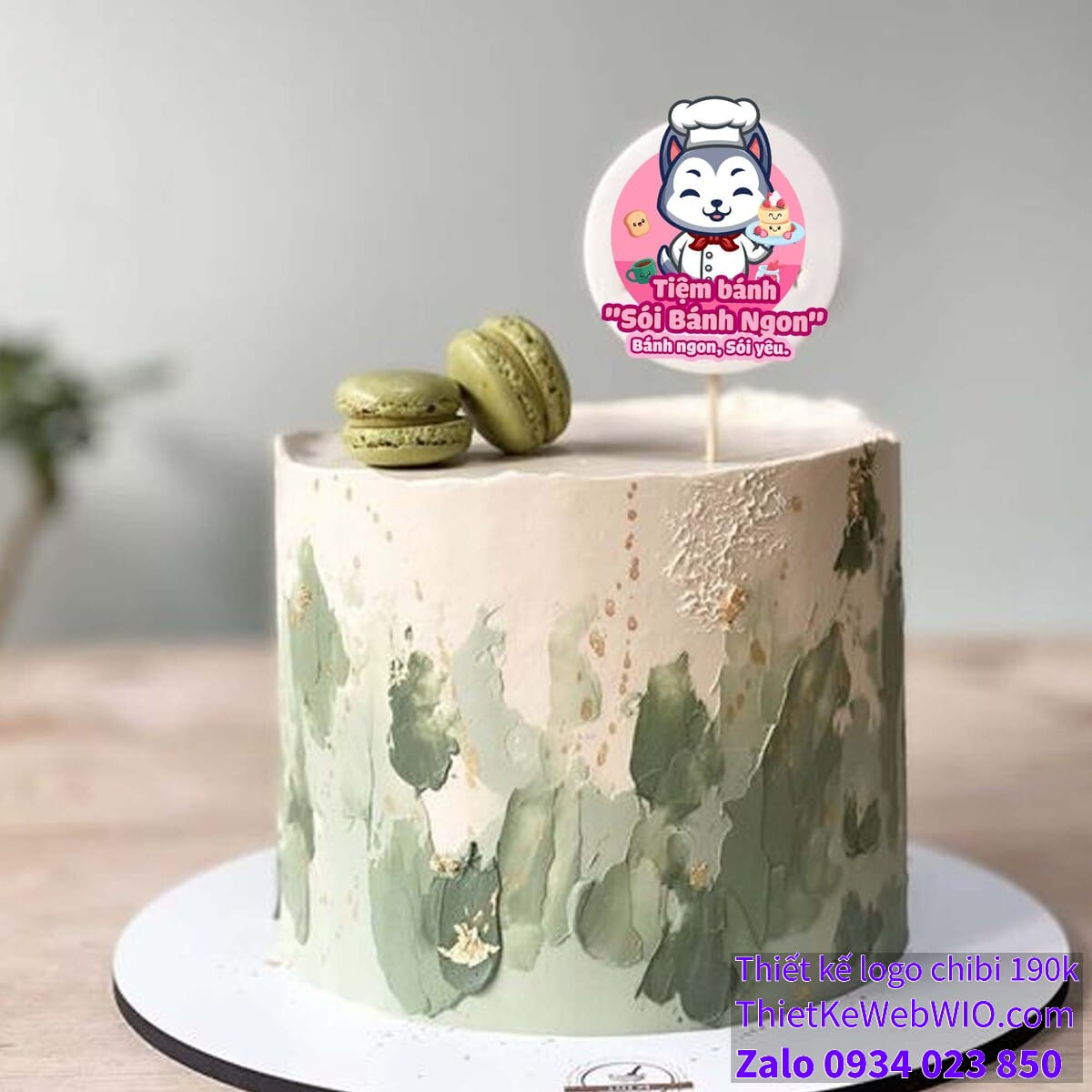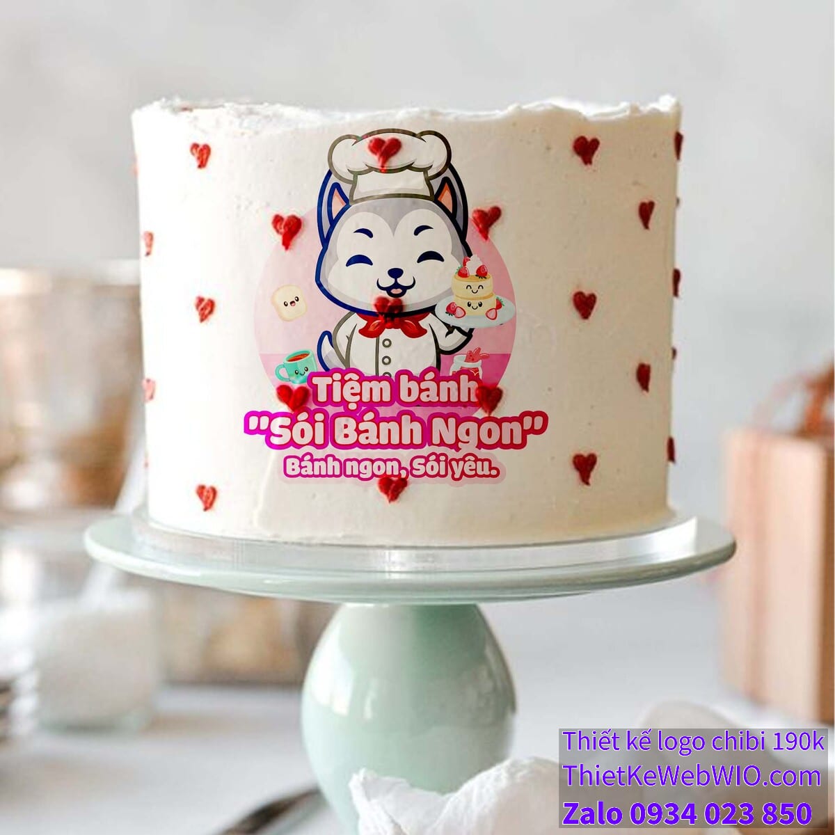 Tóm lại: Hình ảnh chibi của tiệm bánh “Sói Bánh Ngon” là một minh họa dễ thương và sáng tạo, thể hiện đầy đủ các yếu tố của một tiệm bánh ngọt. Từ nhân vật sói đầu bếp đáng yêu đến các chi tiết phụ ngộ nghĩnh, tất cả đều tạo nên một bức tranh sinh động, làm nổi bật sự ngọt ngào và thân thiện của tiệm bánh. Logo và khẩu hiệu được thiết kế hài hòa, dễ nhớ, giúp thu hút sự chú ý của khách hàng và truyền tải thông điệp về sự ngon miệng và tình yêu trong mỗi chiếc bánh.