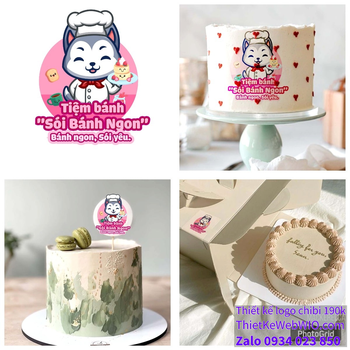 - Khẩu hiệu: “Bánh ngon, Sói yêu.” được đặt ngay dưới tên tiệm, làm nổi bật thông điệp của tiệm bánh.