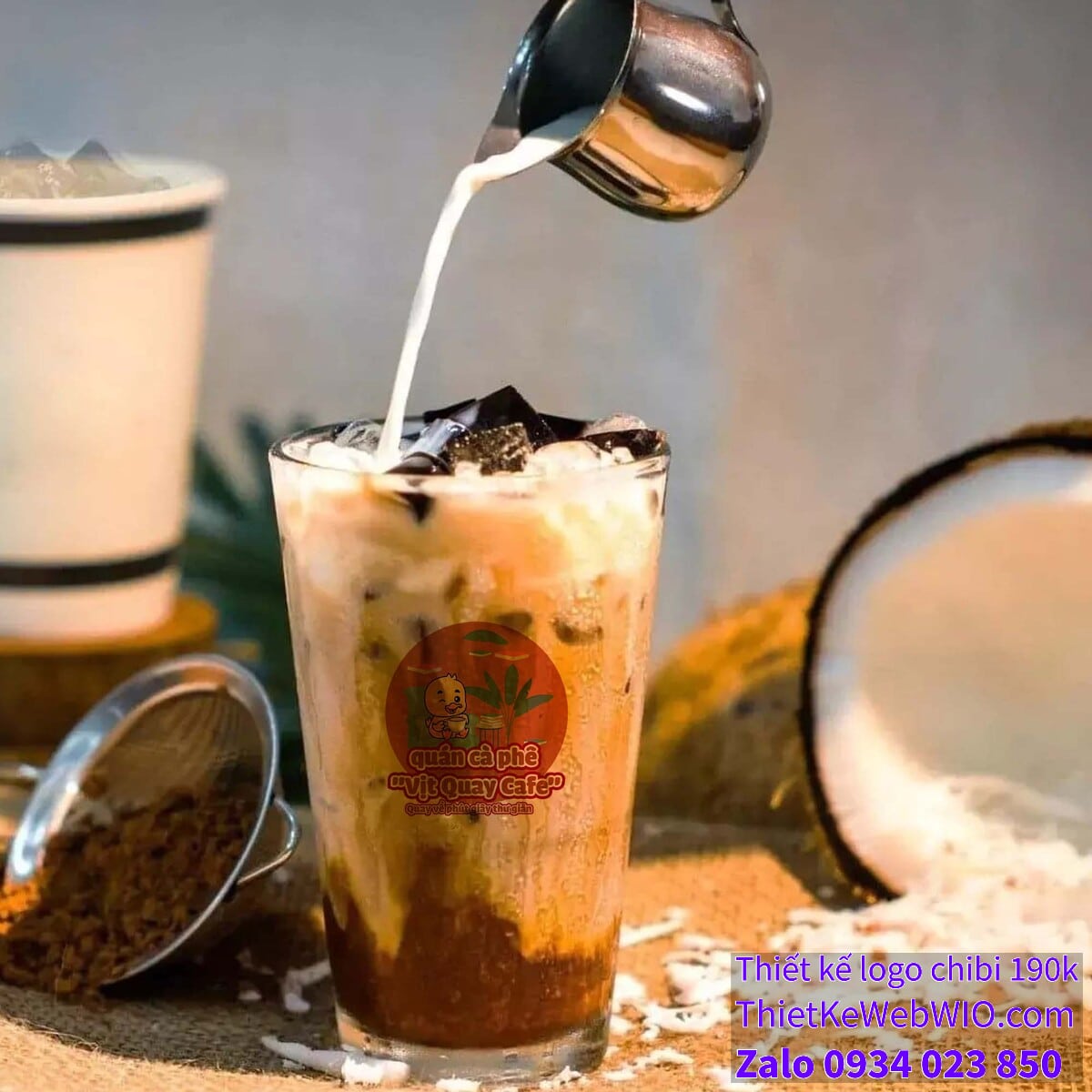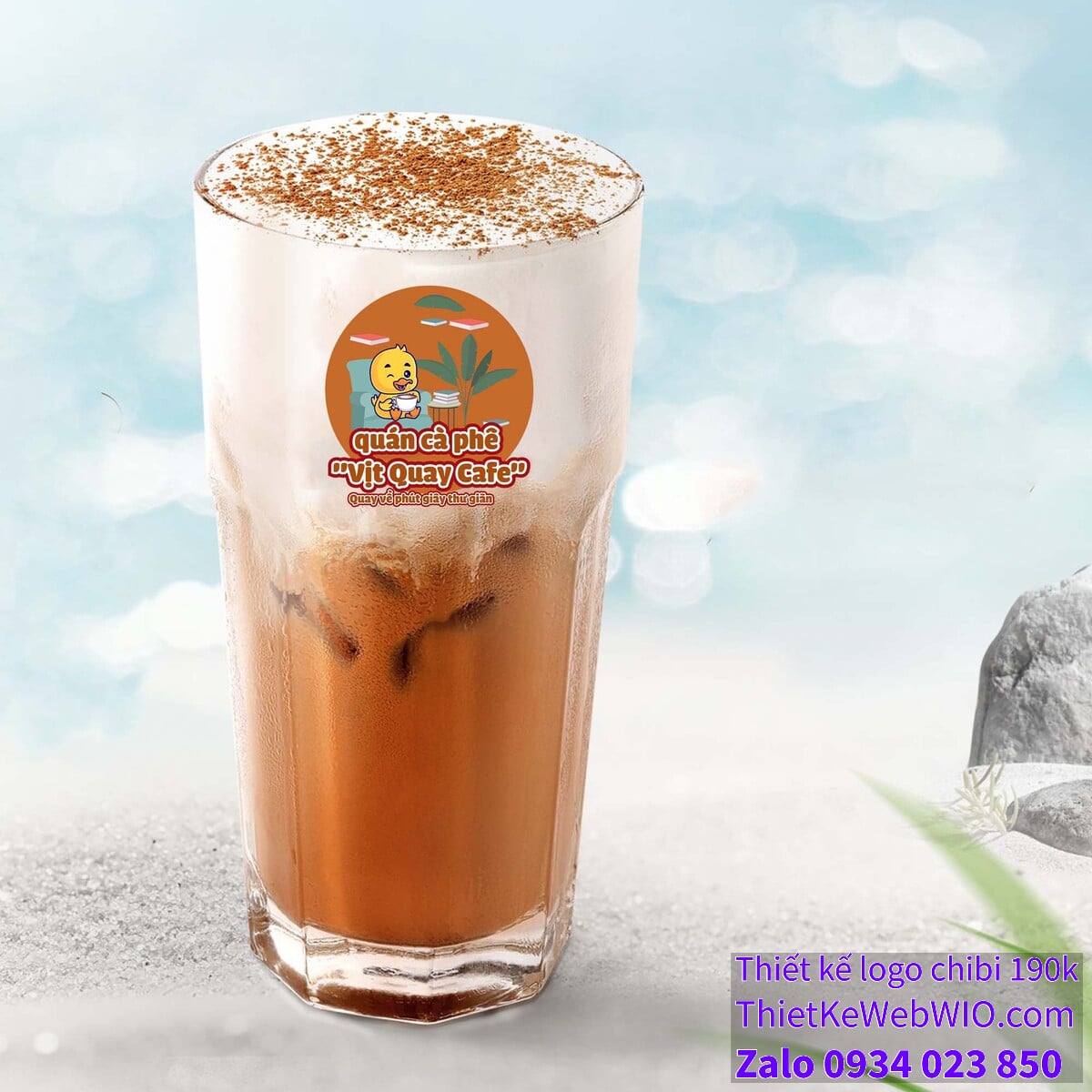 • Logo: Phía dưới hình ảnh chú vịt là dòng chữ “quán cà phê ‘Vịt Quay Cafe'” với font chữ to, đậm và dễ thương. Màu sắc chủ đạo là đỏ và trắng, làm nổi bật và dễ nhận diện.