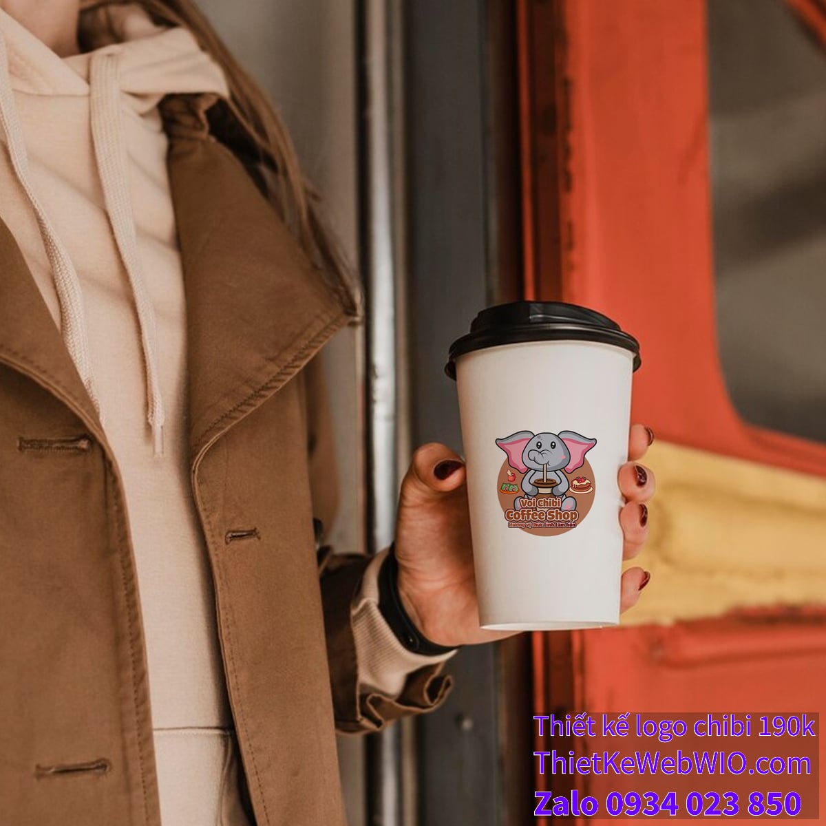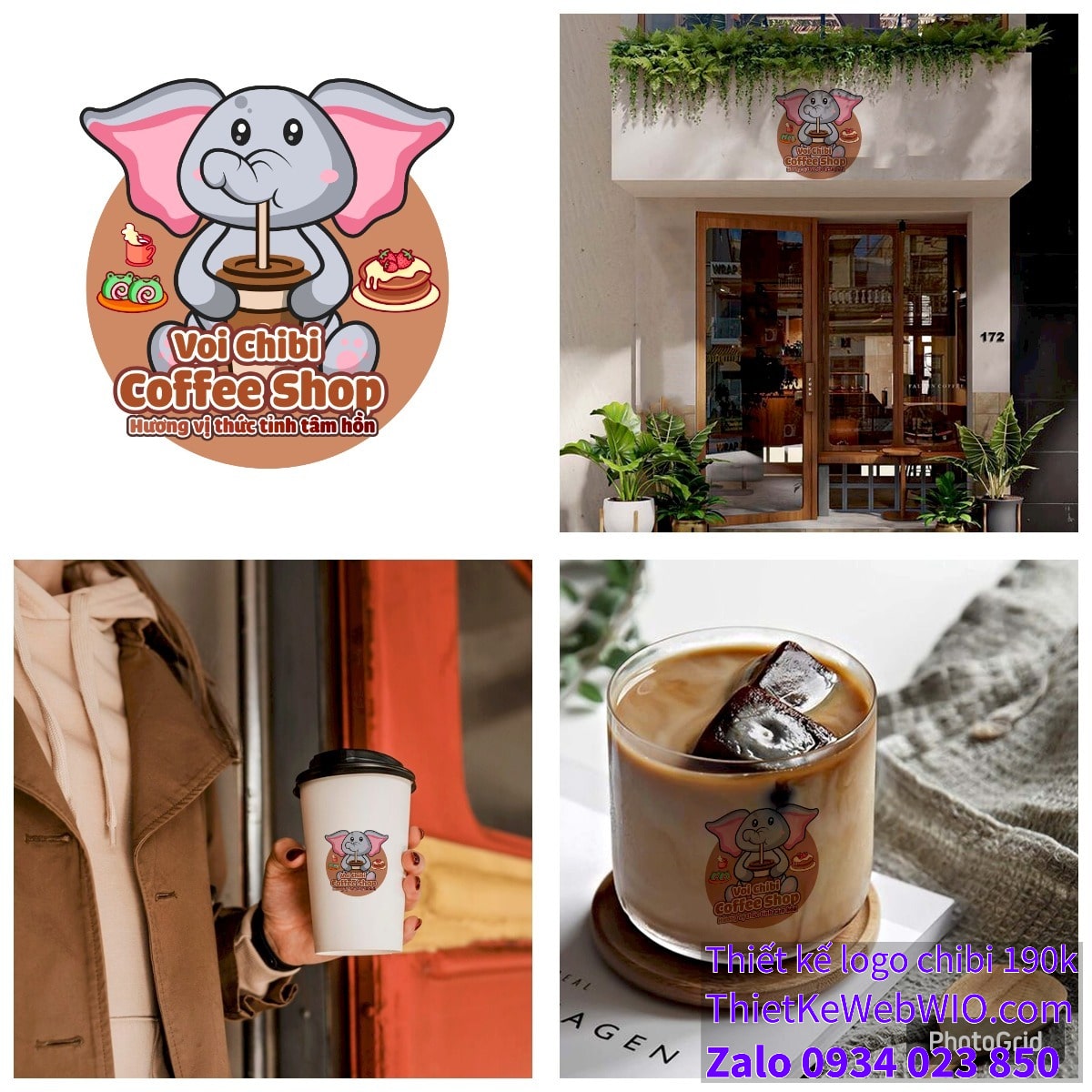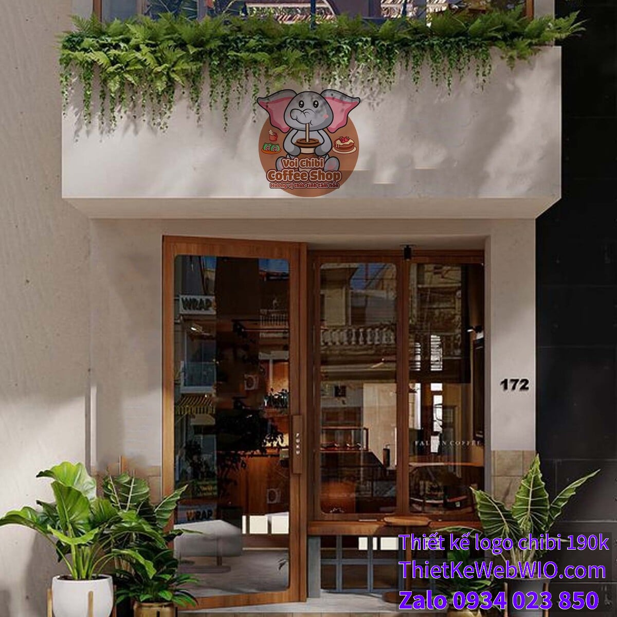 - Tên quán: “Voi chibi Coffee Shop” được viết nổi bật với font chữ đáng yêu và dễ đọc.
