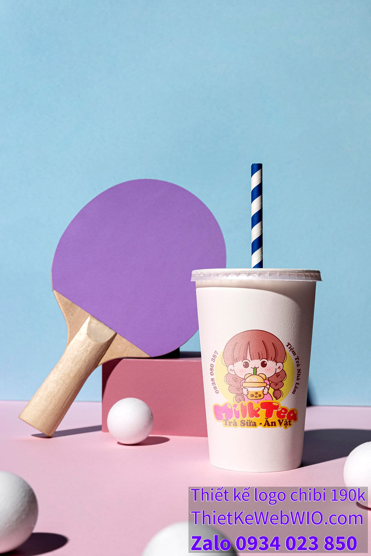 Vẽ chibi cô bé bím tóc dễ thương đang uống trà sữa để thiết kế logo