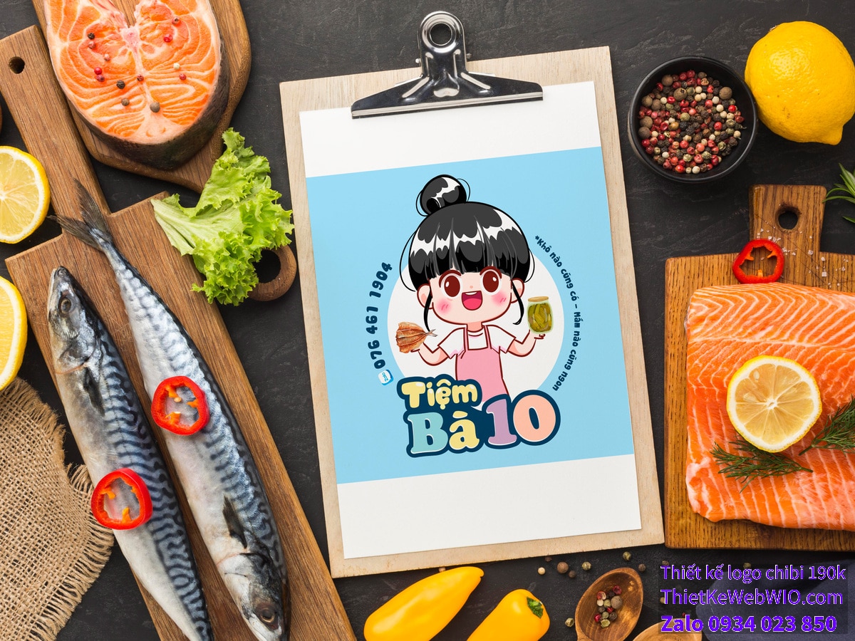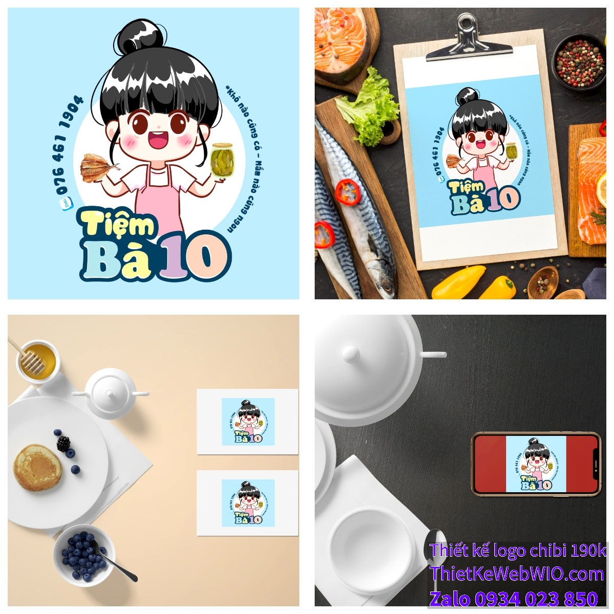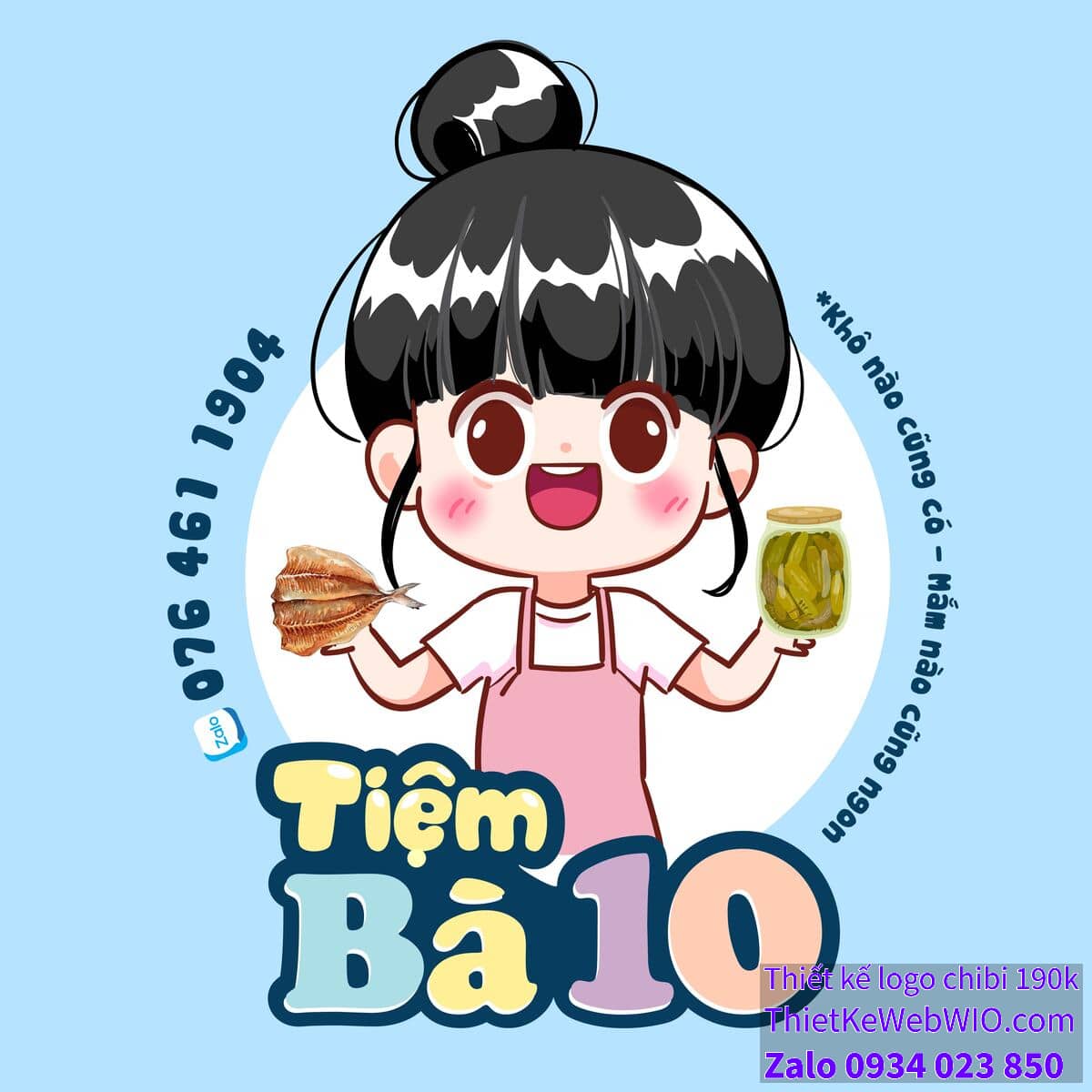 Tổng thể bức ảnh chibi này không chỉ thể hiện sự dễ thương và thân thiện của cô gái mà còn truyền tải được thông điệp về sự phong phú và chất lượng của cửa hàng “Tiệm Bà 10”. Đây là một thiết kế logo hoàn hảo để thu hút khách hàng và tạo nên một dấu ấn riêng cho thương hiệu.